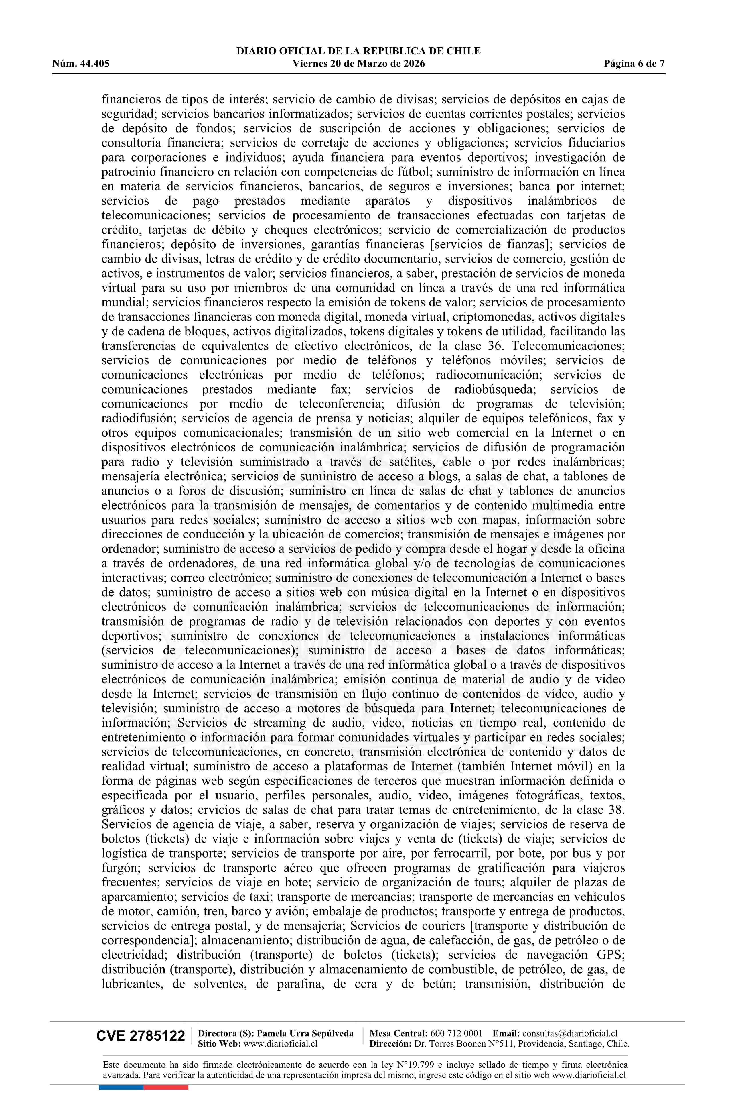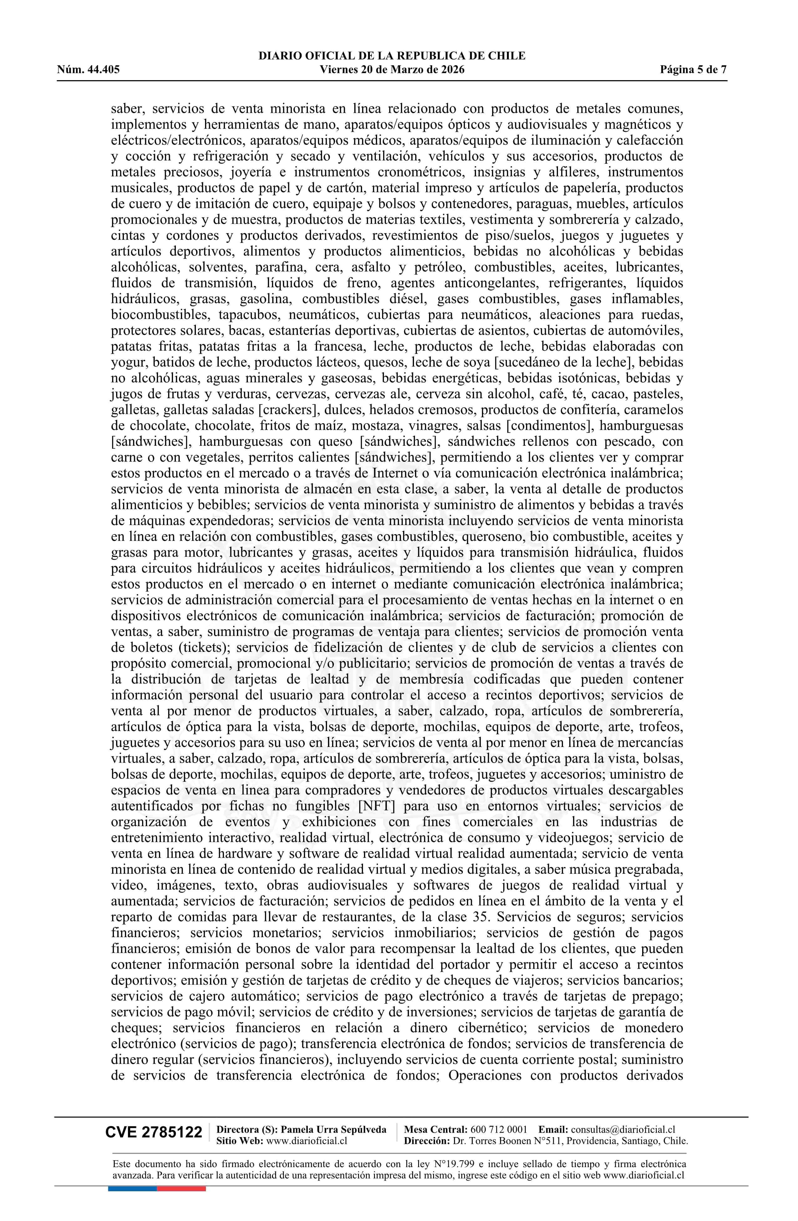 | Fuente: | Diario Oficial Edición Electrónica (Diario Oficial de Chile - 6 Marcas Y Patentes) | Página(s): | 15-21 |