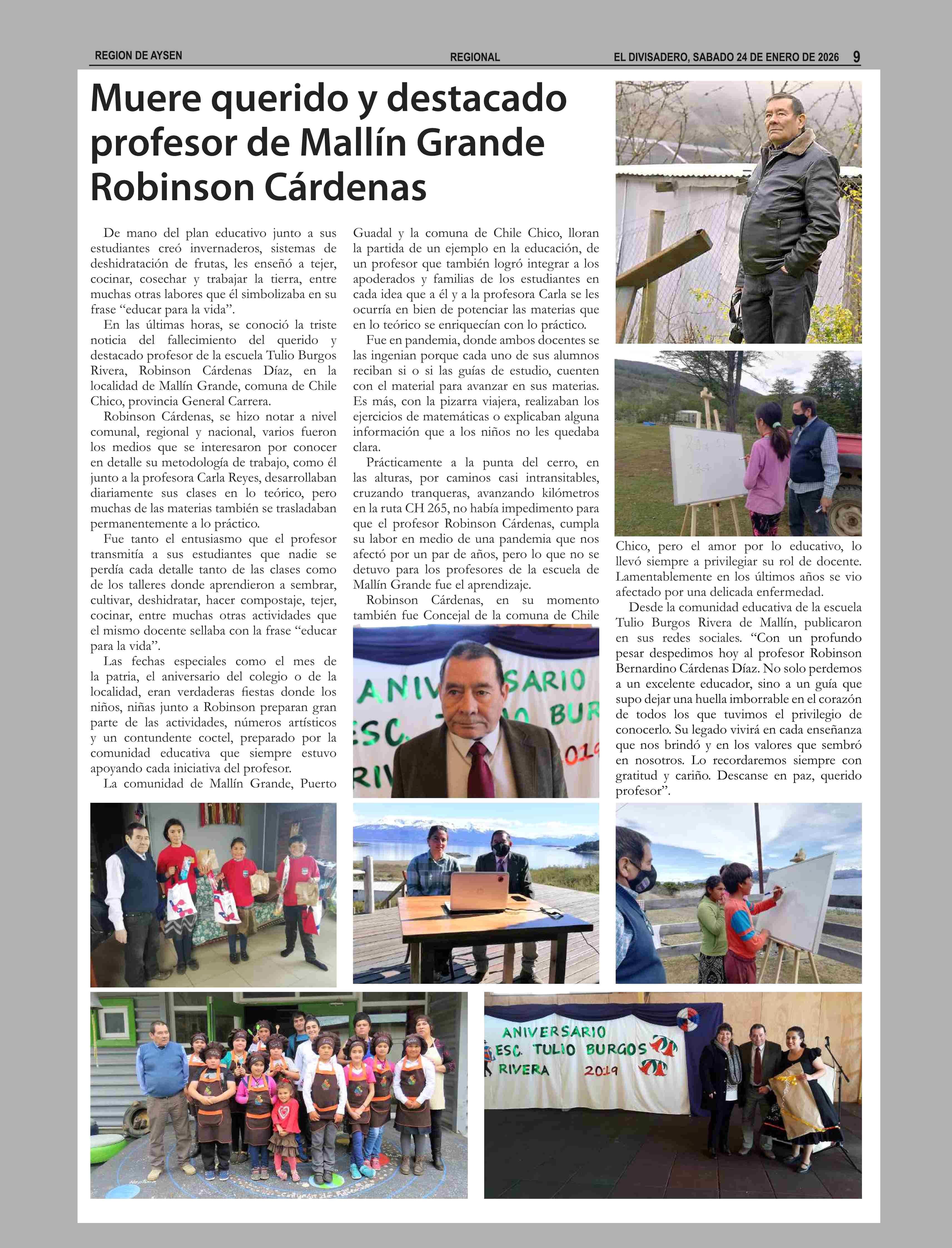 Título: Muere querido y destacado profesor de Mallín Grande Robinson Cárdenas