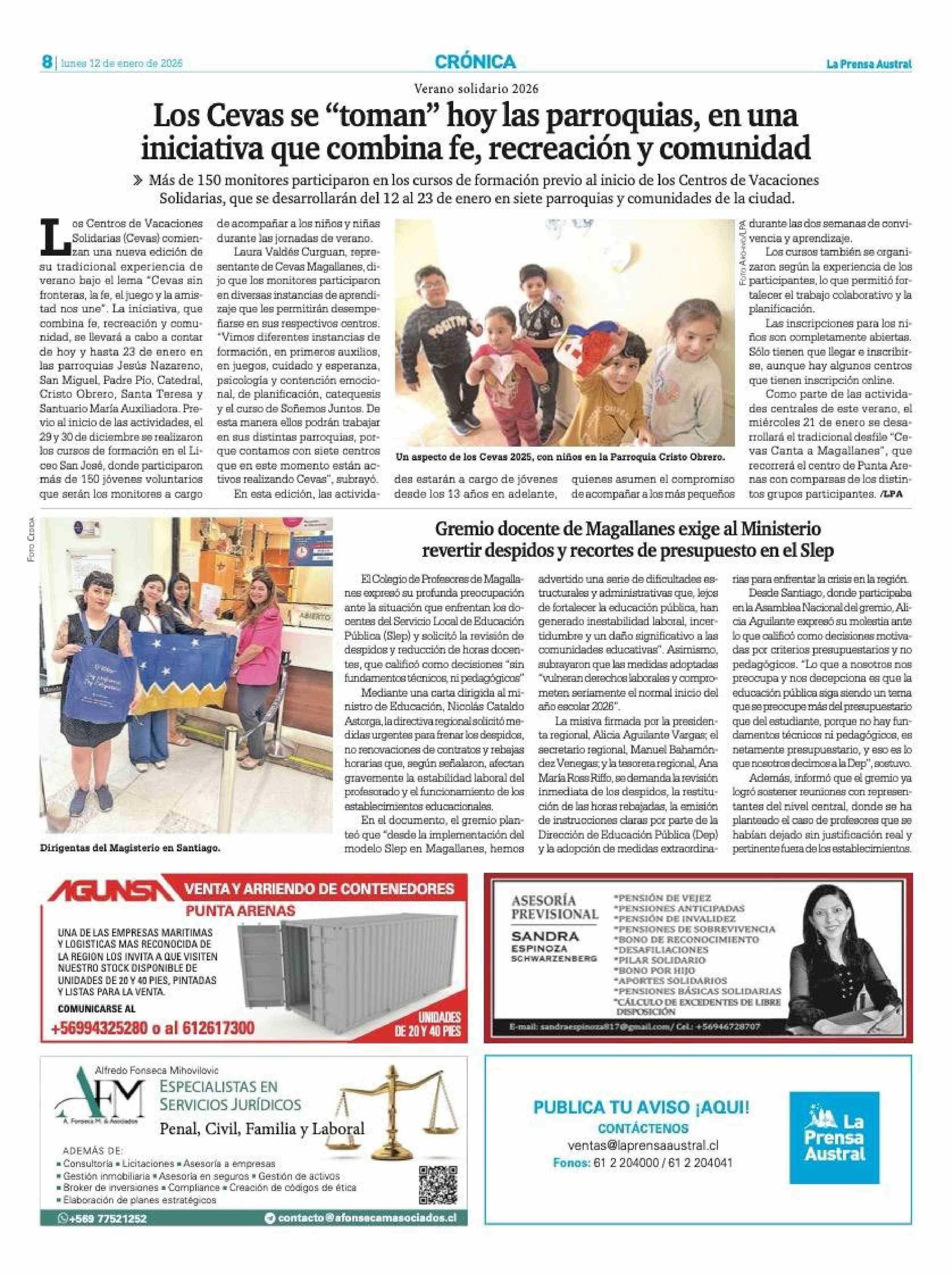 Fecha: 12-01-2026 Sector: Noticia general Región: Región de Magallanes y de la Antártica Chilena