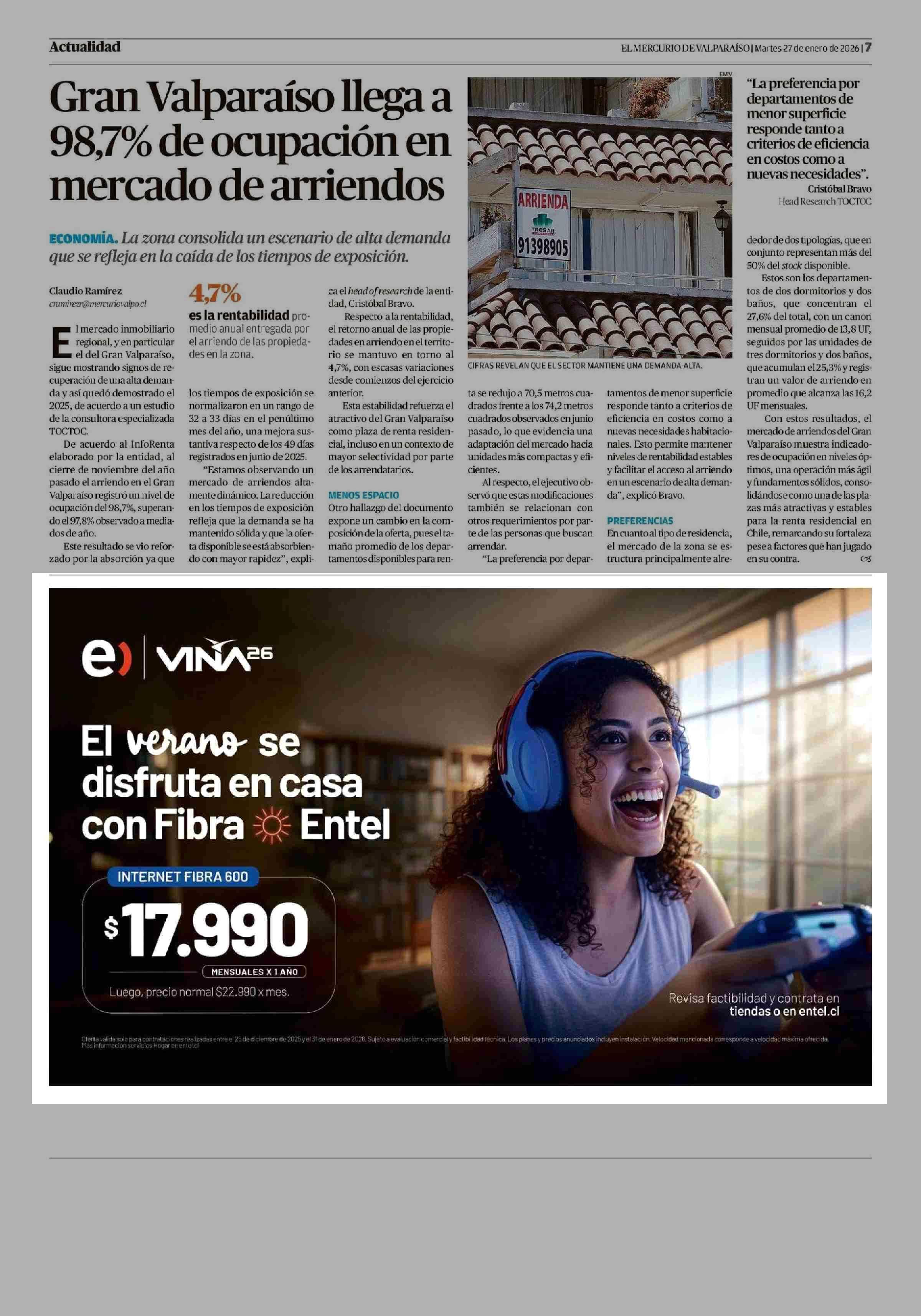 Aviso Telecomunicaciones: ENTEL 27-01-2026 El Mercurio de Valparaíso |