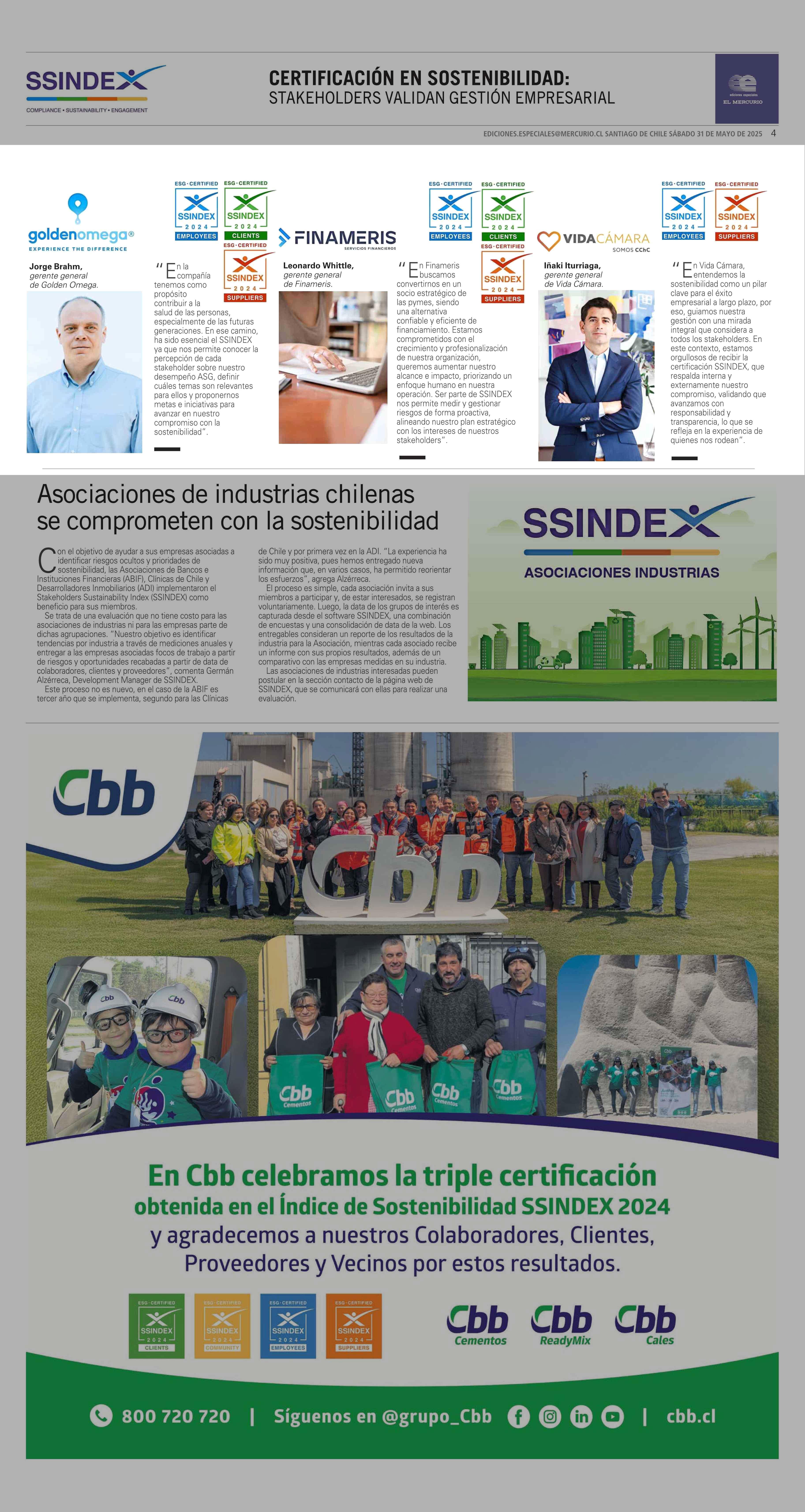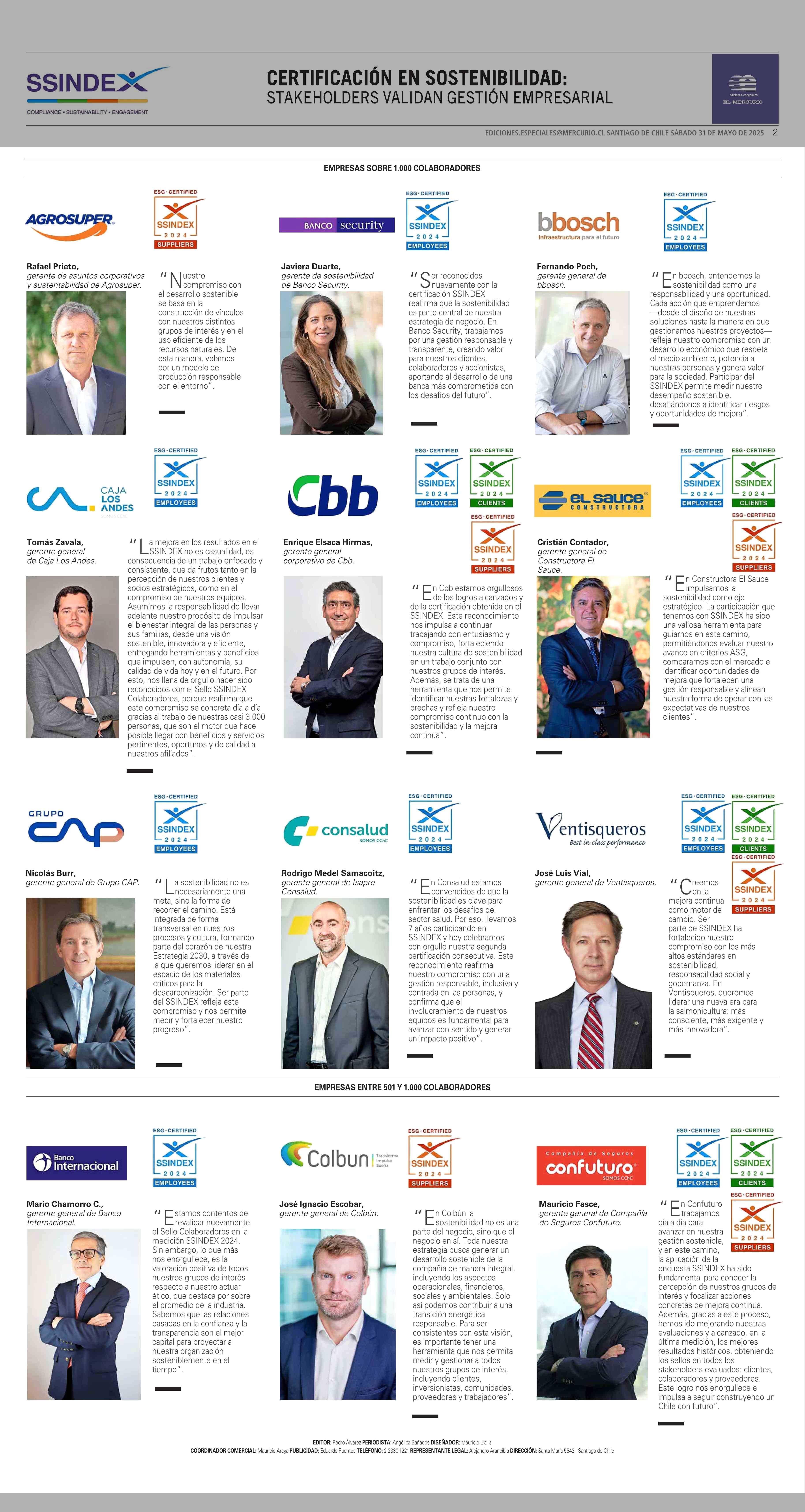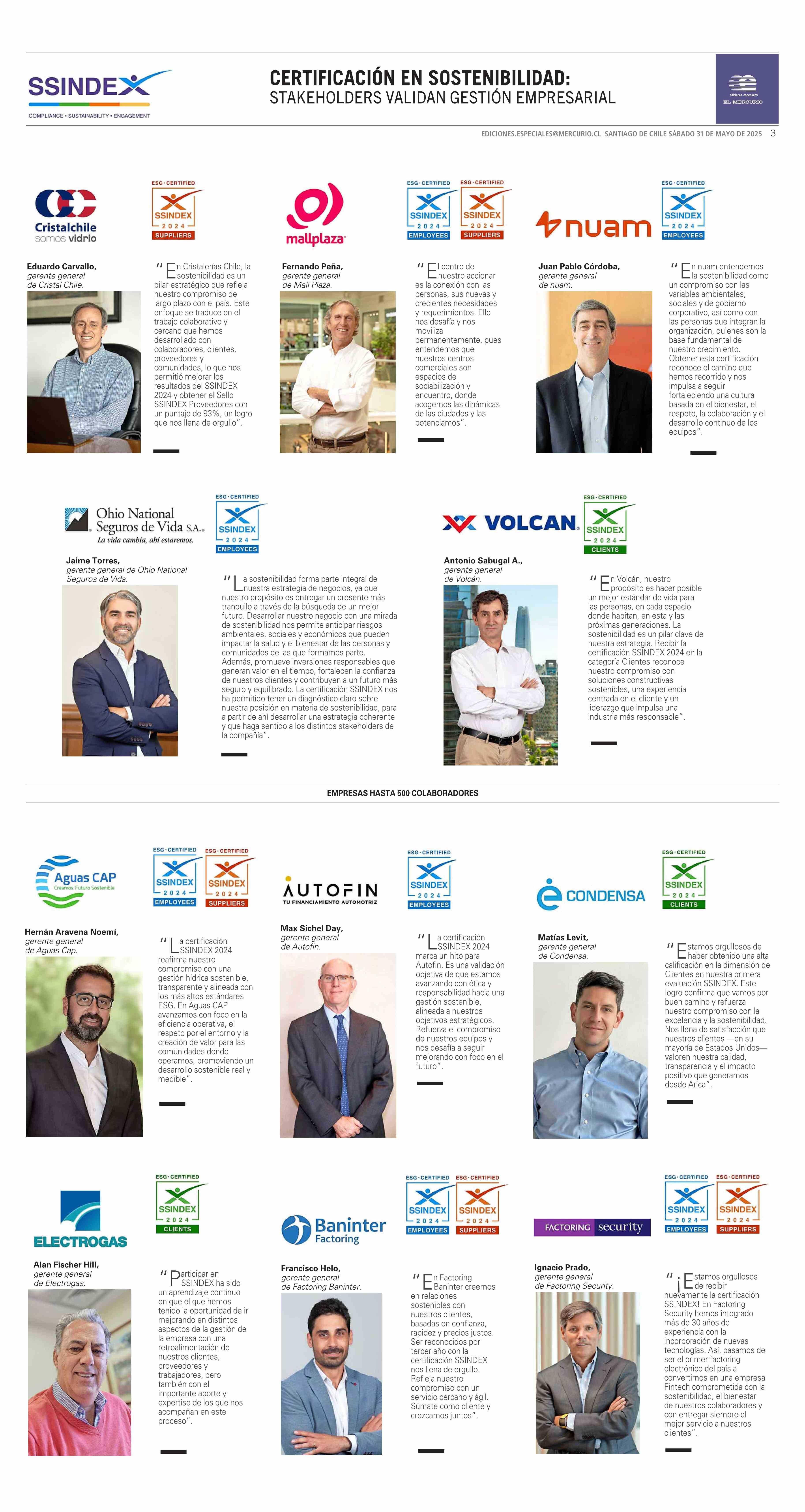 EMPRESAS CHILENAS CERTIFICADAS EN SOSTENIBILIDAD 31-05-2025 El Mercurio |