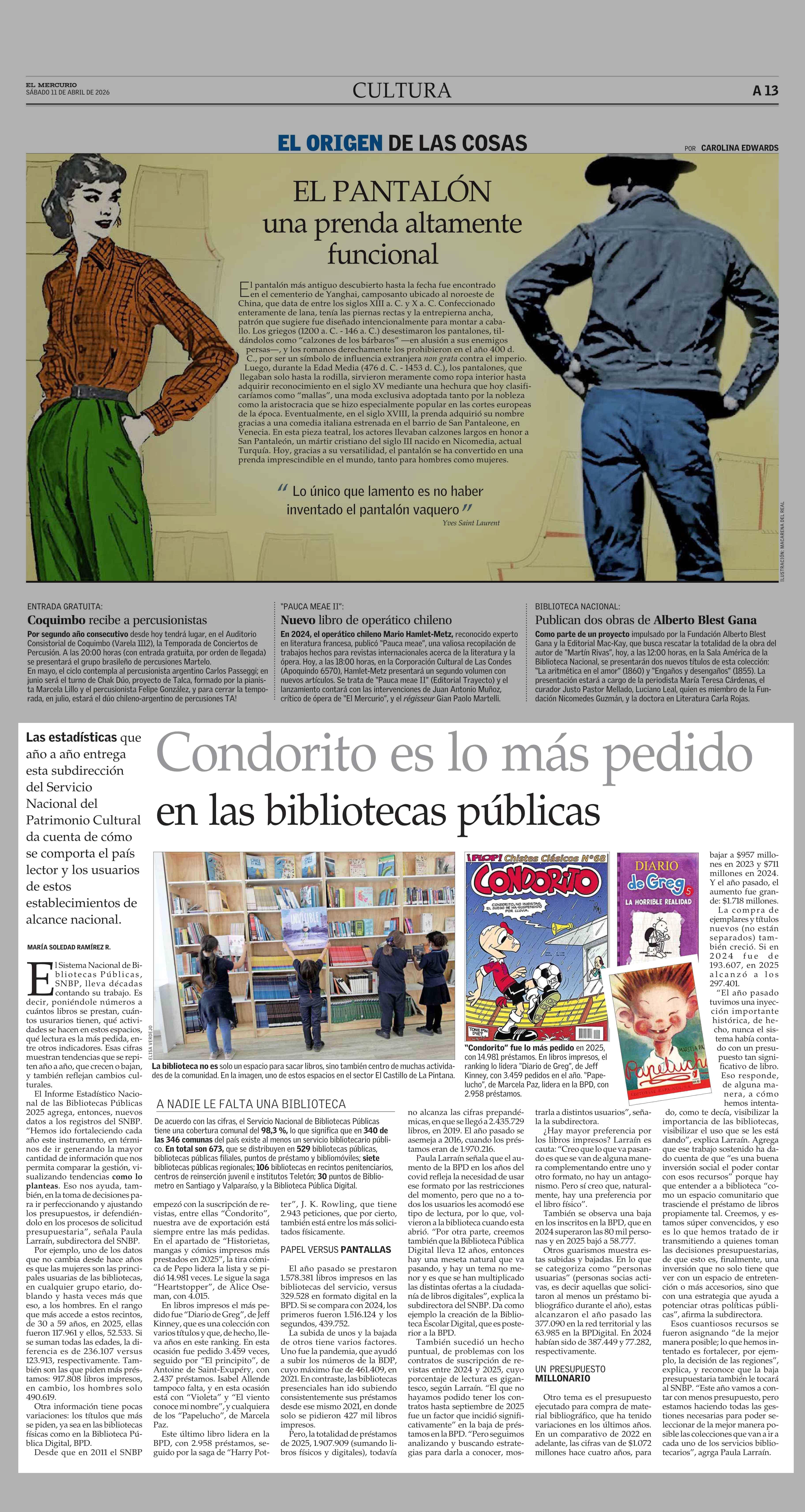 Condorito es lo más pedido en las bibliotecas públicas 11-04-2026 El Mercurio |