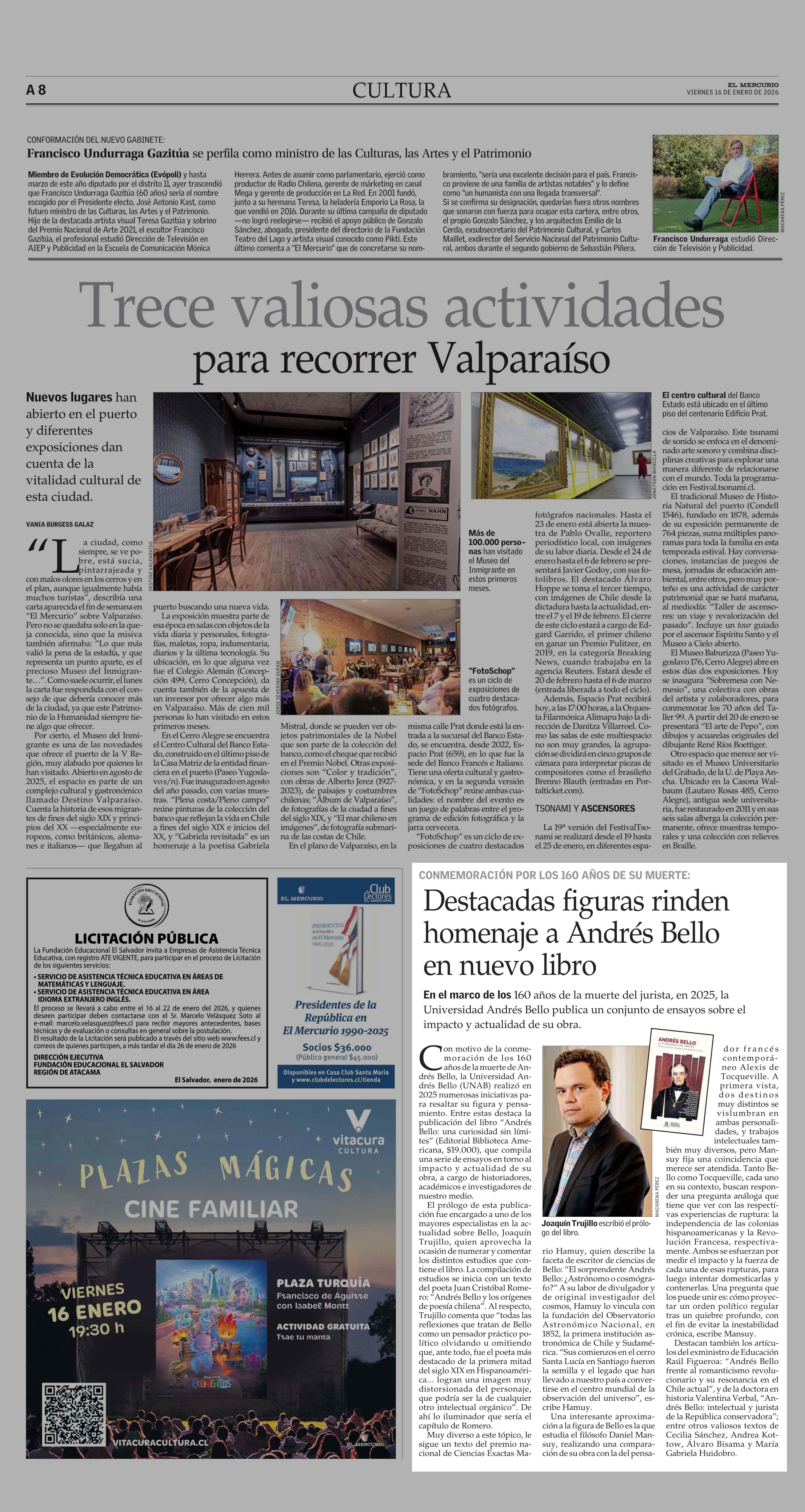 Destacadas figuras rinden homenaje a Andrés Bello en nuevo libro 16-01-2026 El Mercurio |