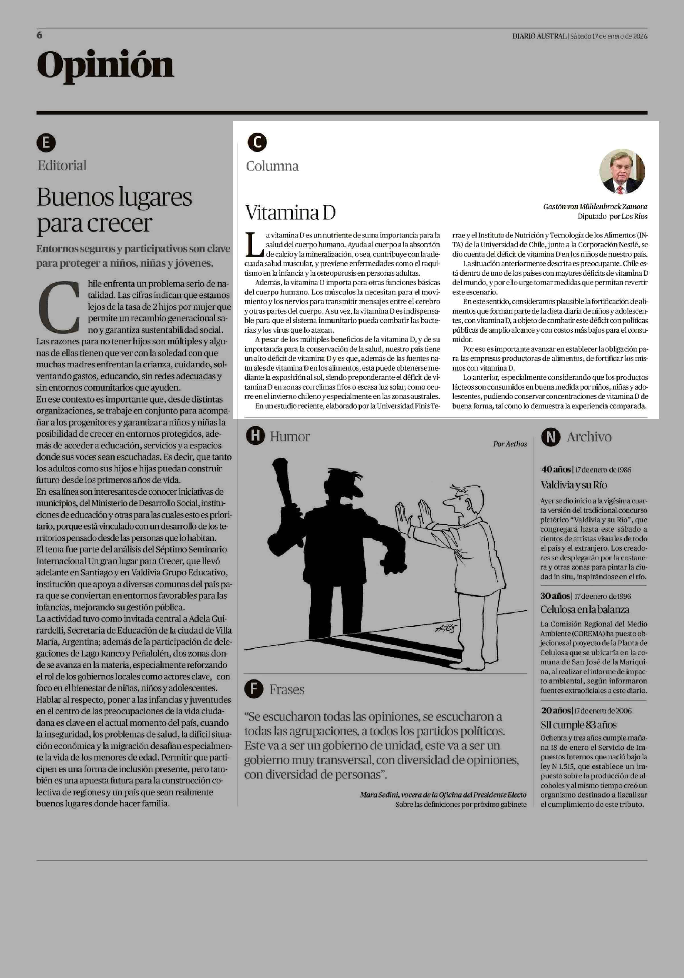 Fecha: 17-01-2026 Sector: Columnas de Opinión Región: Región de Los Ríos