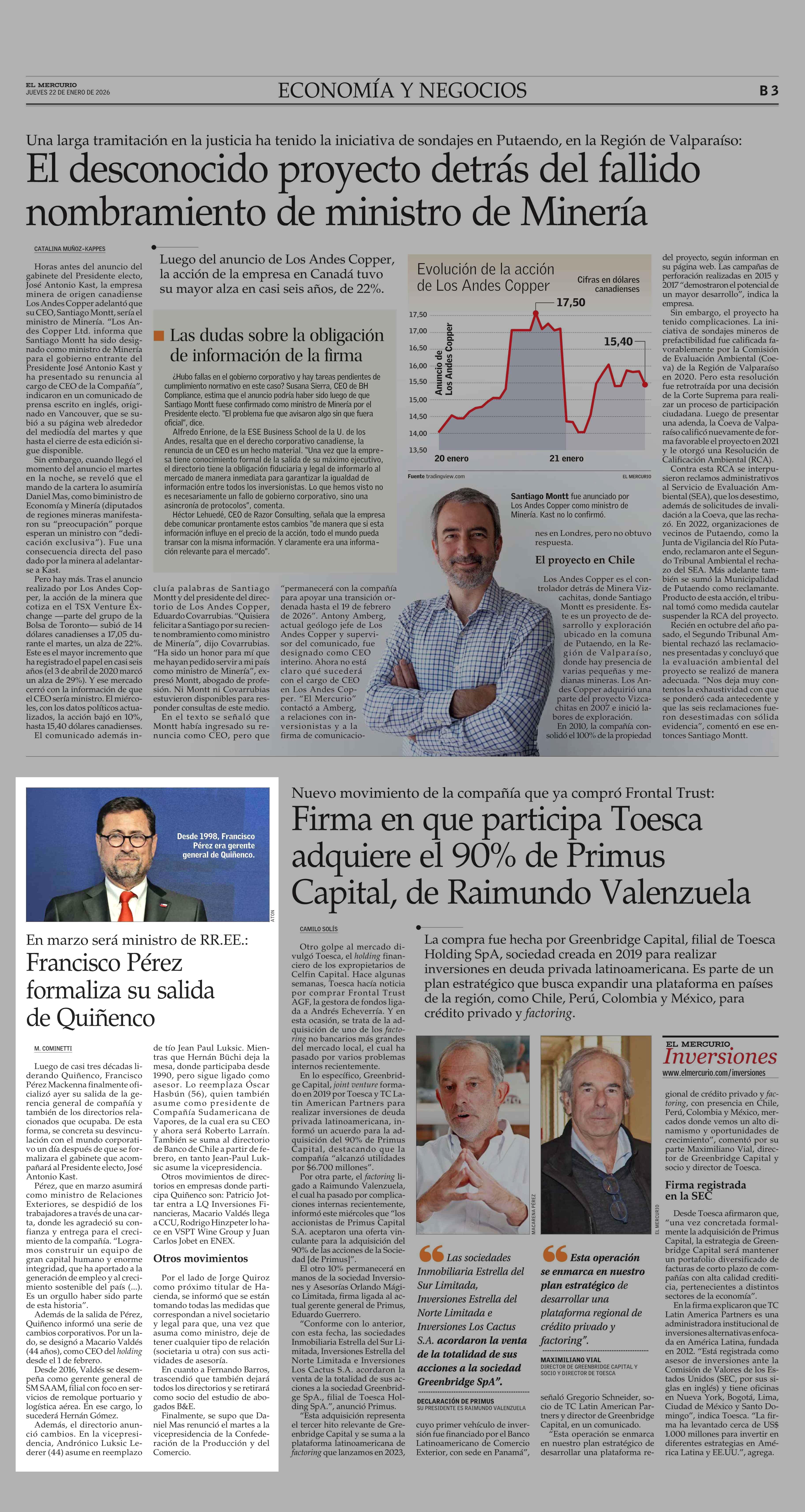 Francisco Pérez formaliza su salida de Quiñenco 22-01-2026 El Mercurio |