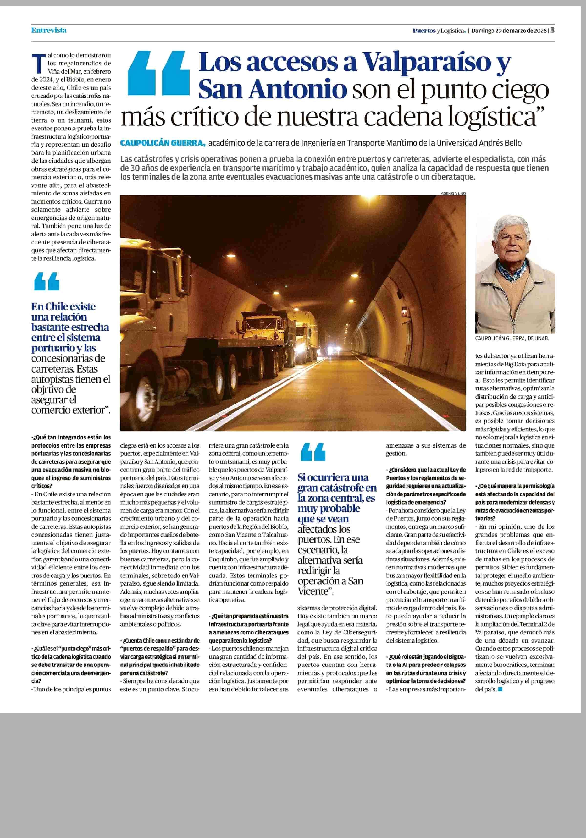 Título: Los accesos a Valparaíso y : San Antonio son el punto ciego - más crítico de nuestra cadena logística”