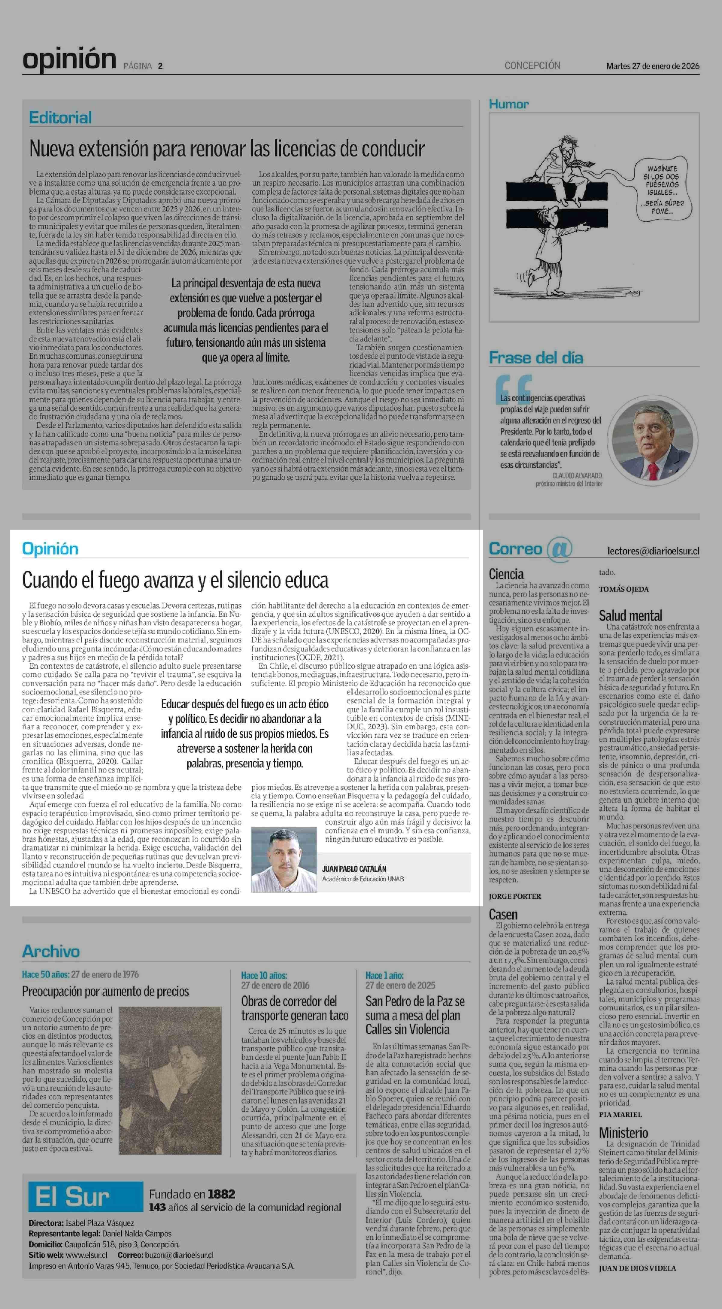 | Fecha: | 27-01-2026 | Sector: | Columnas de Opinión | Región: | Región del Bío-Bío |