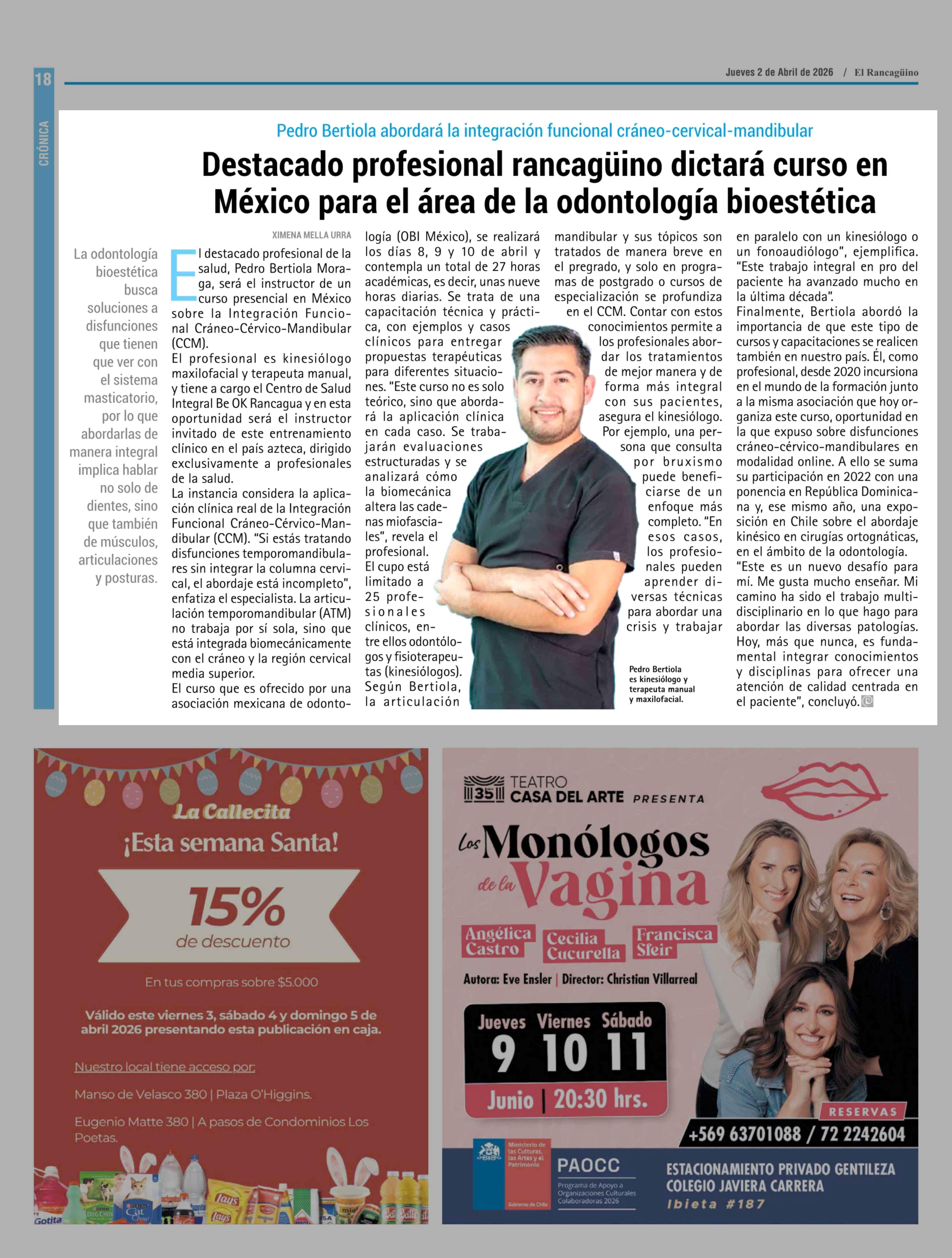 Destacado profesional rancaguino dictará curso en México para el área de la odontología bioestética 02-04-2026 El Rancagüino |