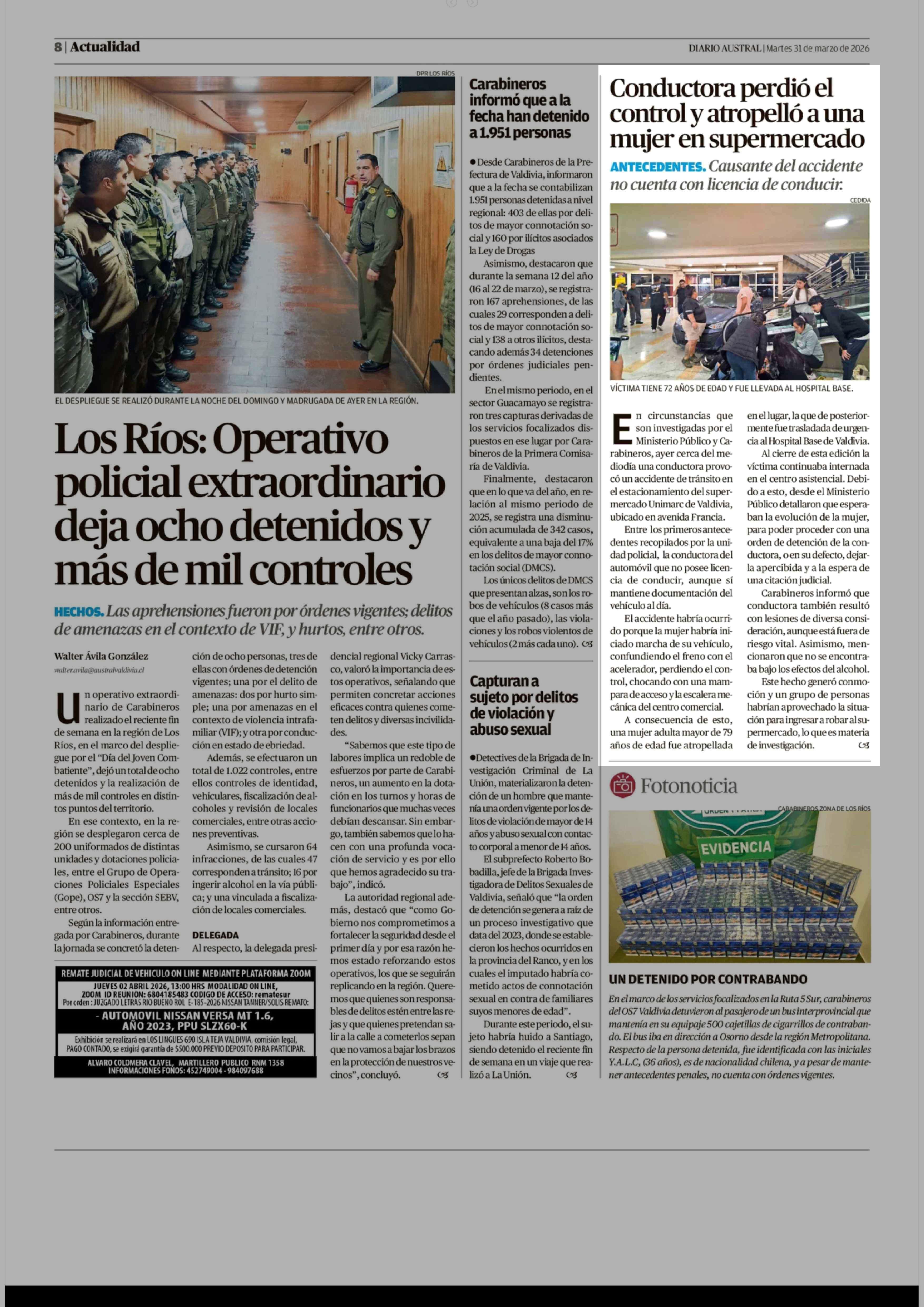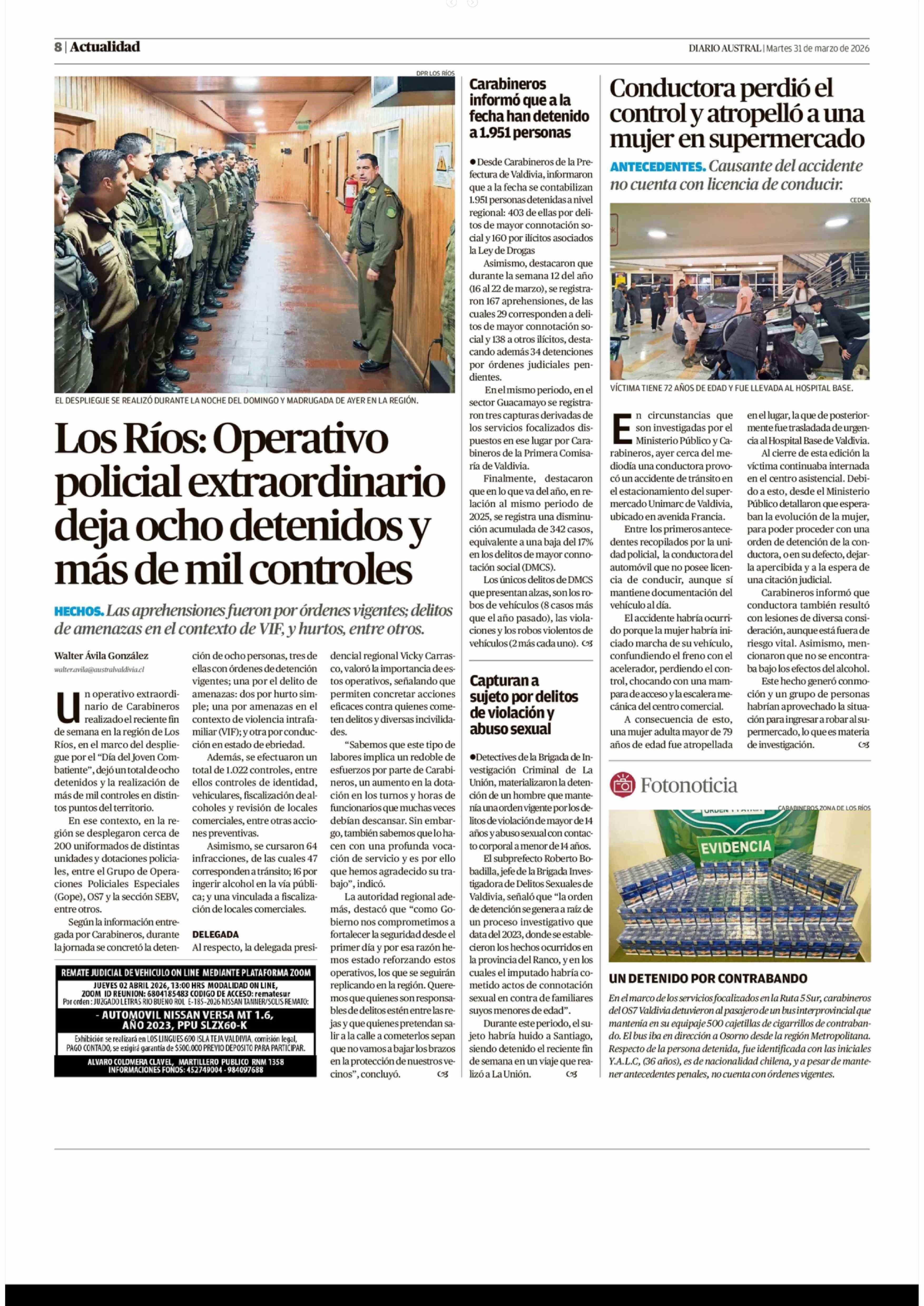 | Fecha: | 31-03-2026 | Sector: | Noticia general | Región: | Región de Los Ríos |