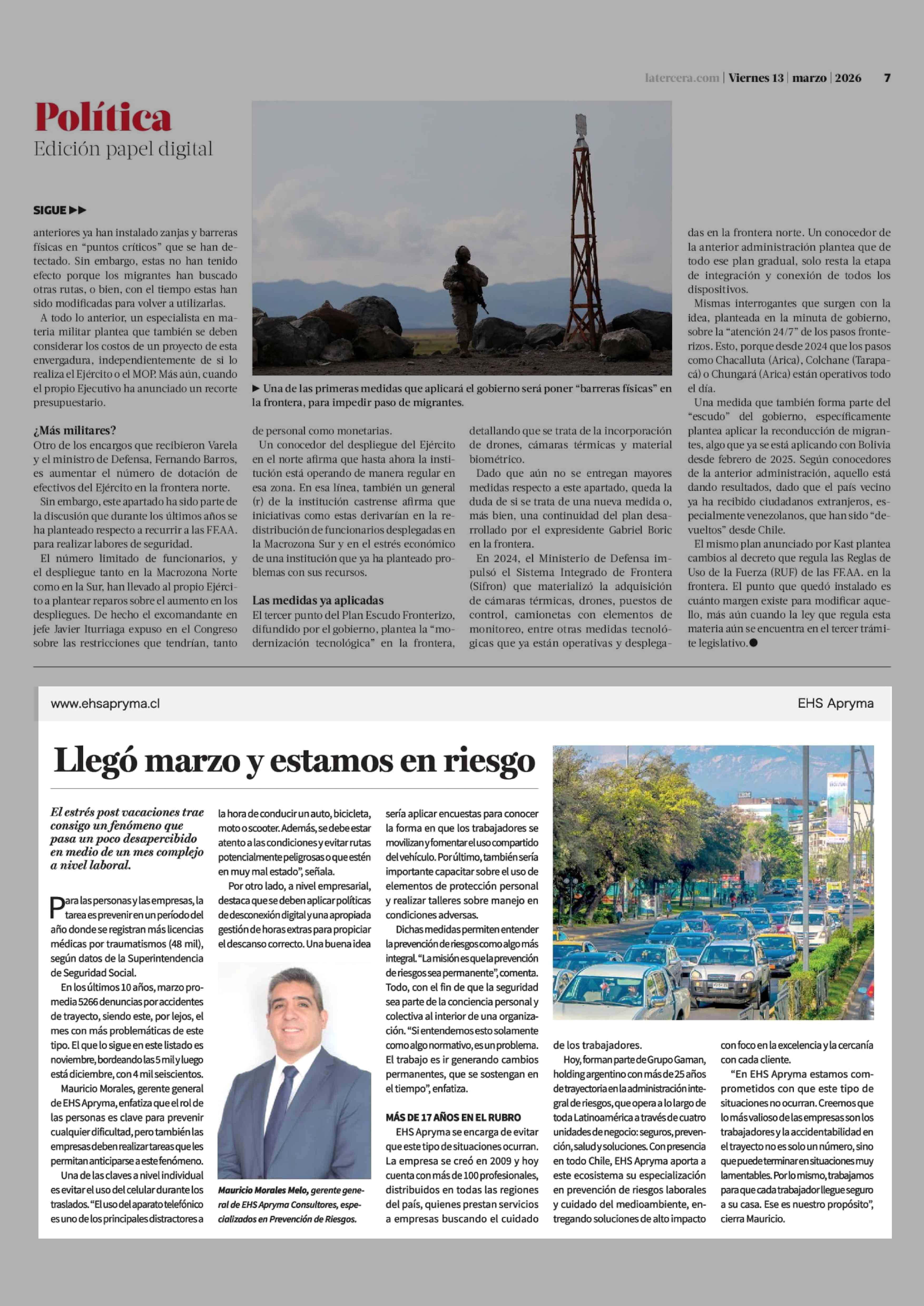 Llegó marzo y estamos en riesgo 13-03-2026 La Tercera |