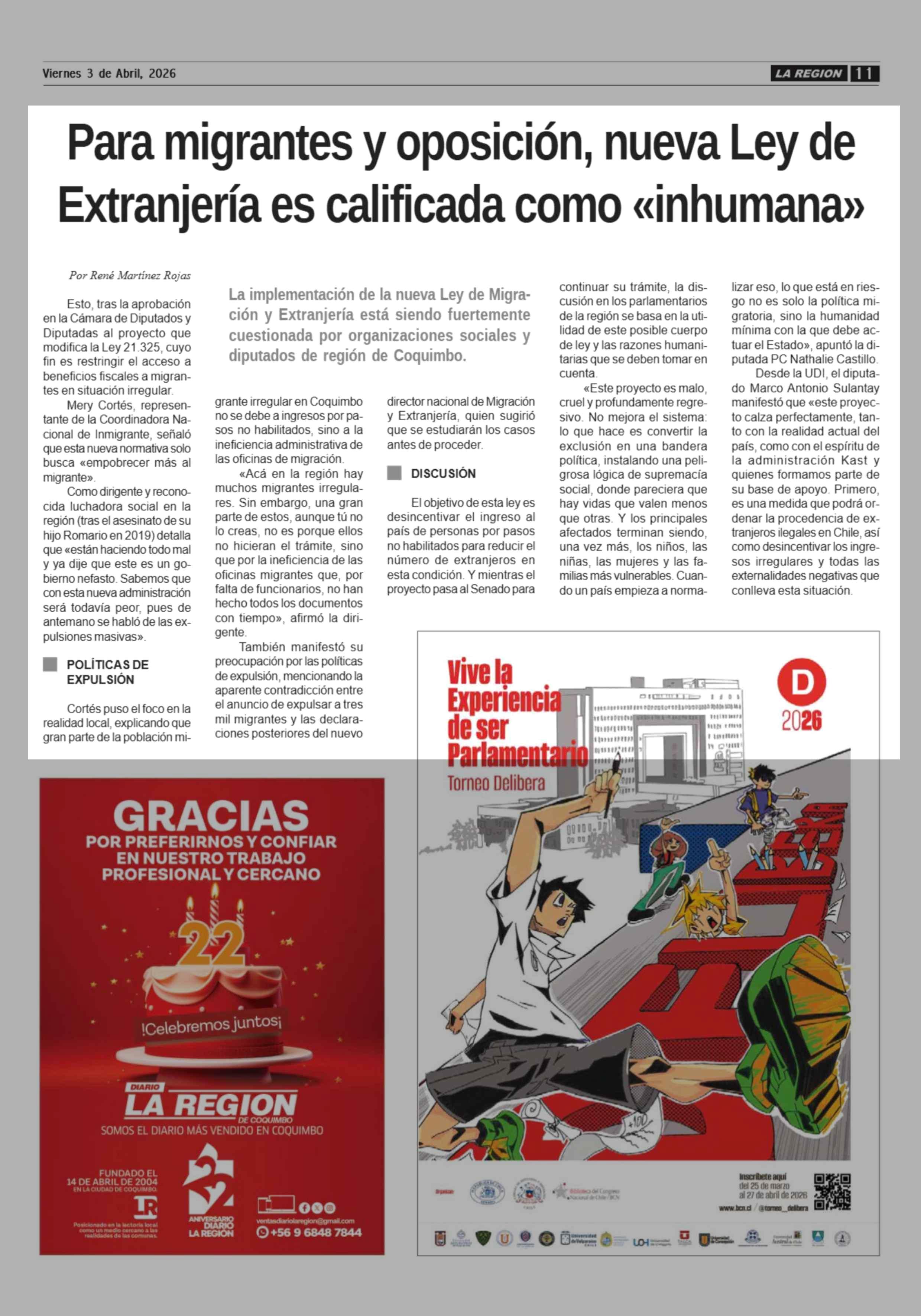 Fuente: Diario la Región (Diario la Región) Página(s): 11