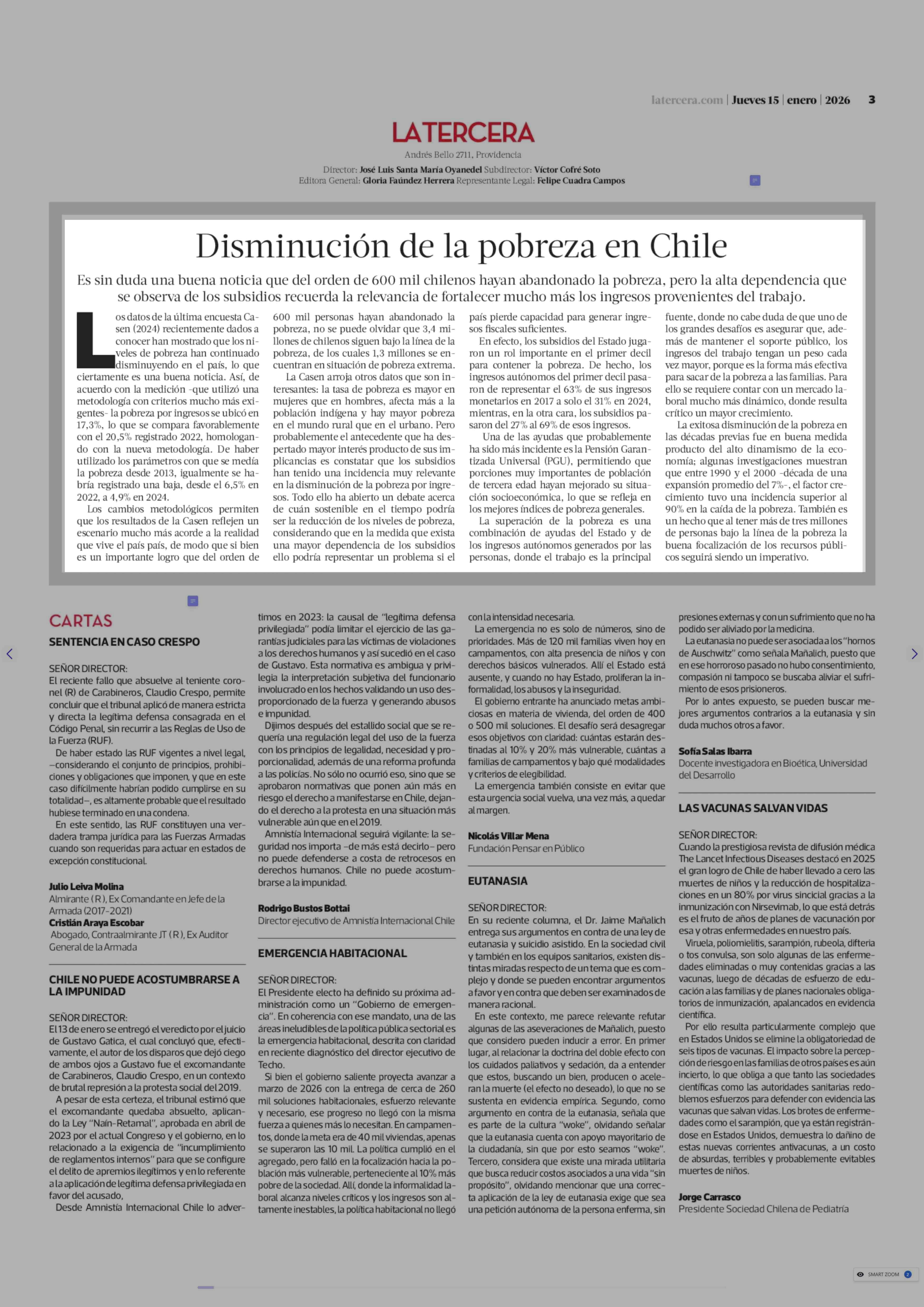 Editorial: Disminución de la pobreza en Chile 15-01-2026 La Tercera |