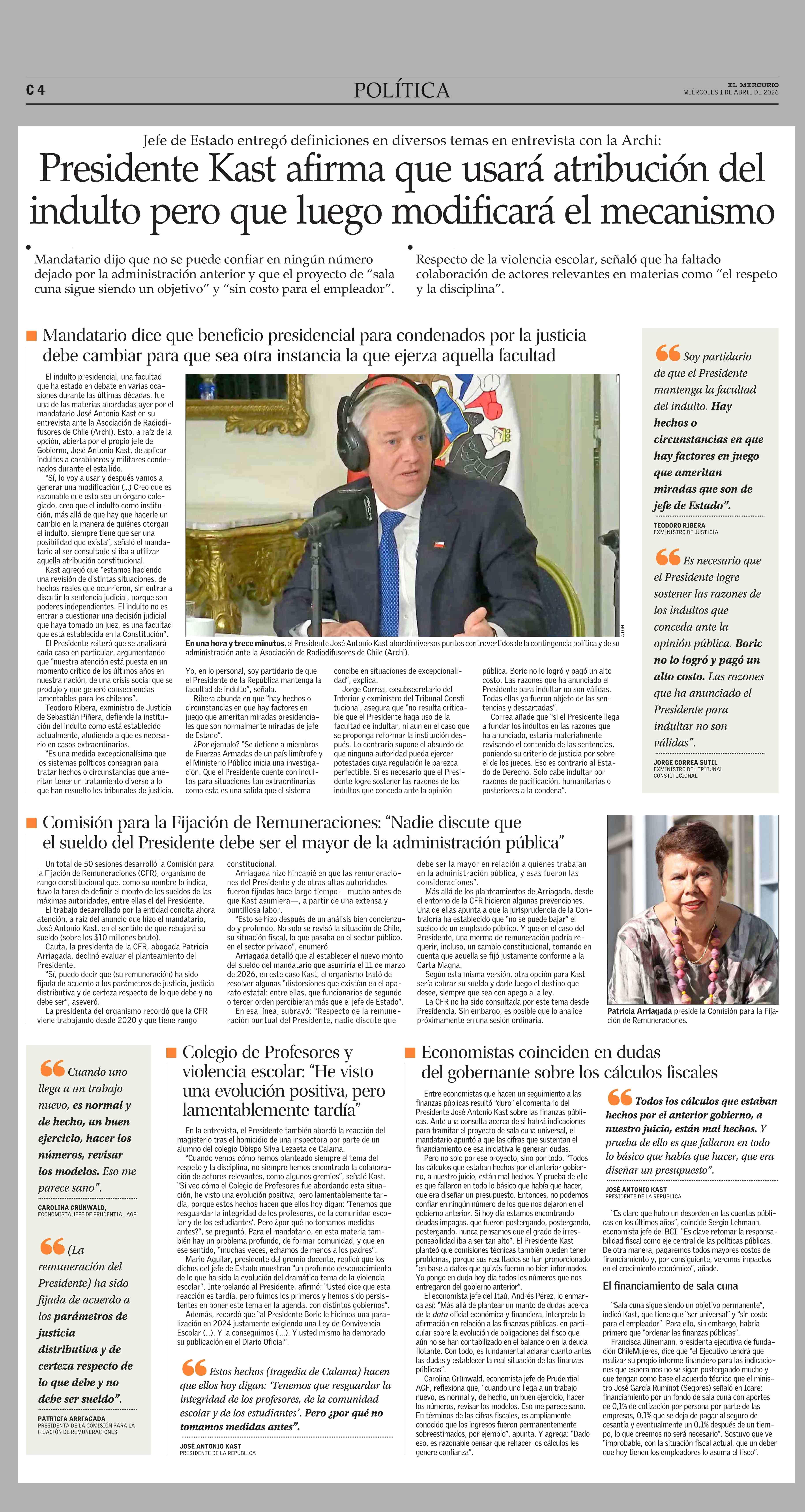 Título: Presidente Kast afirma que usará atribución del indulto pero que luego modificará el mecanismo