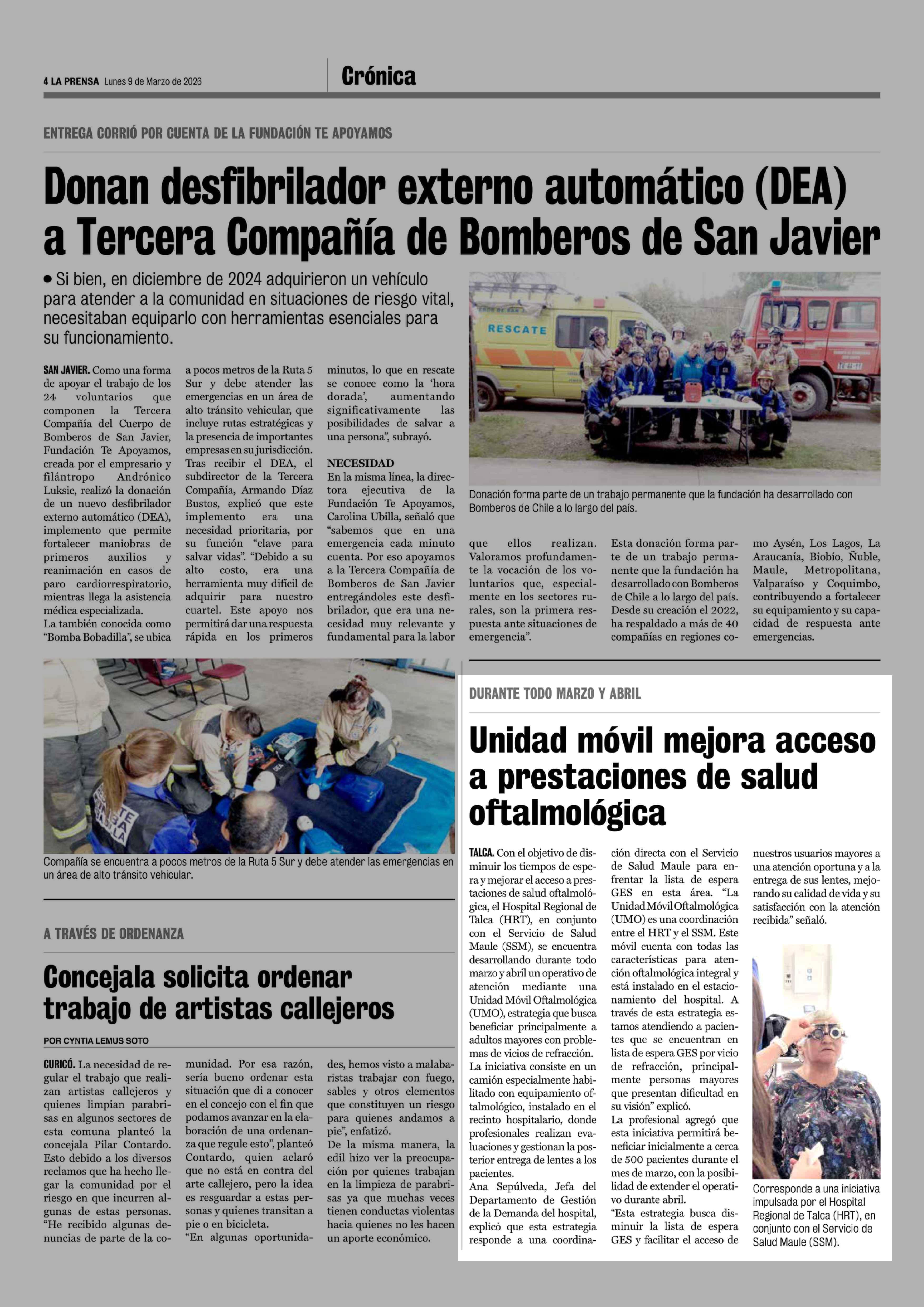 Fuente: La Prensa de Curicó (La Prensa de Curicó) Página(s): 4