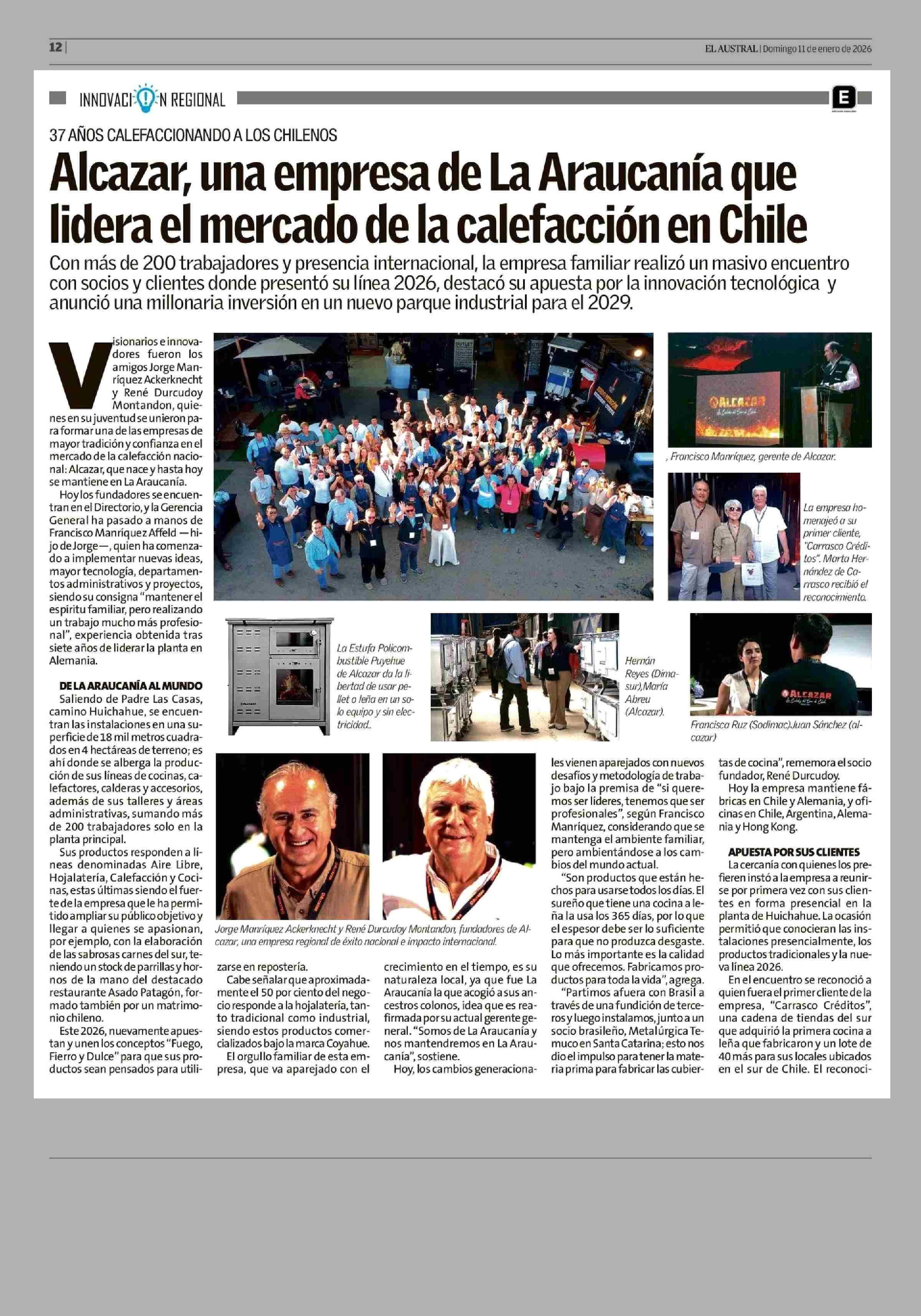 Alcazar, una empresa de La Araucanía que lidera el mercado de la calefacción en Chile 11-01-2026 El Austral de la Araucanía |