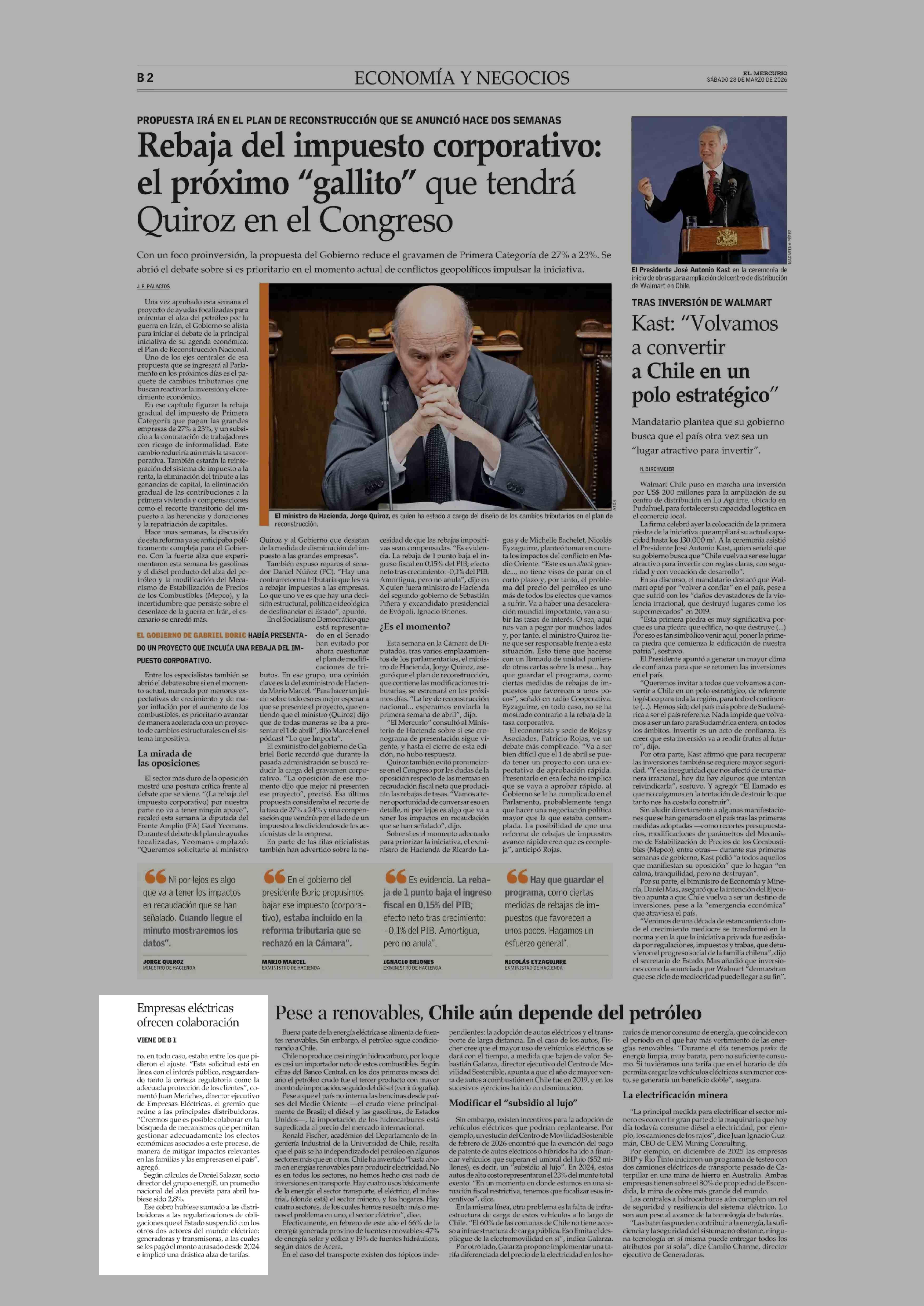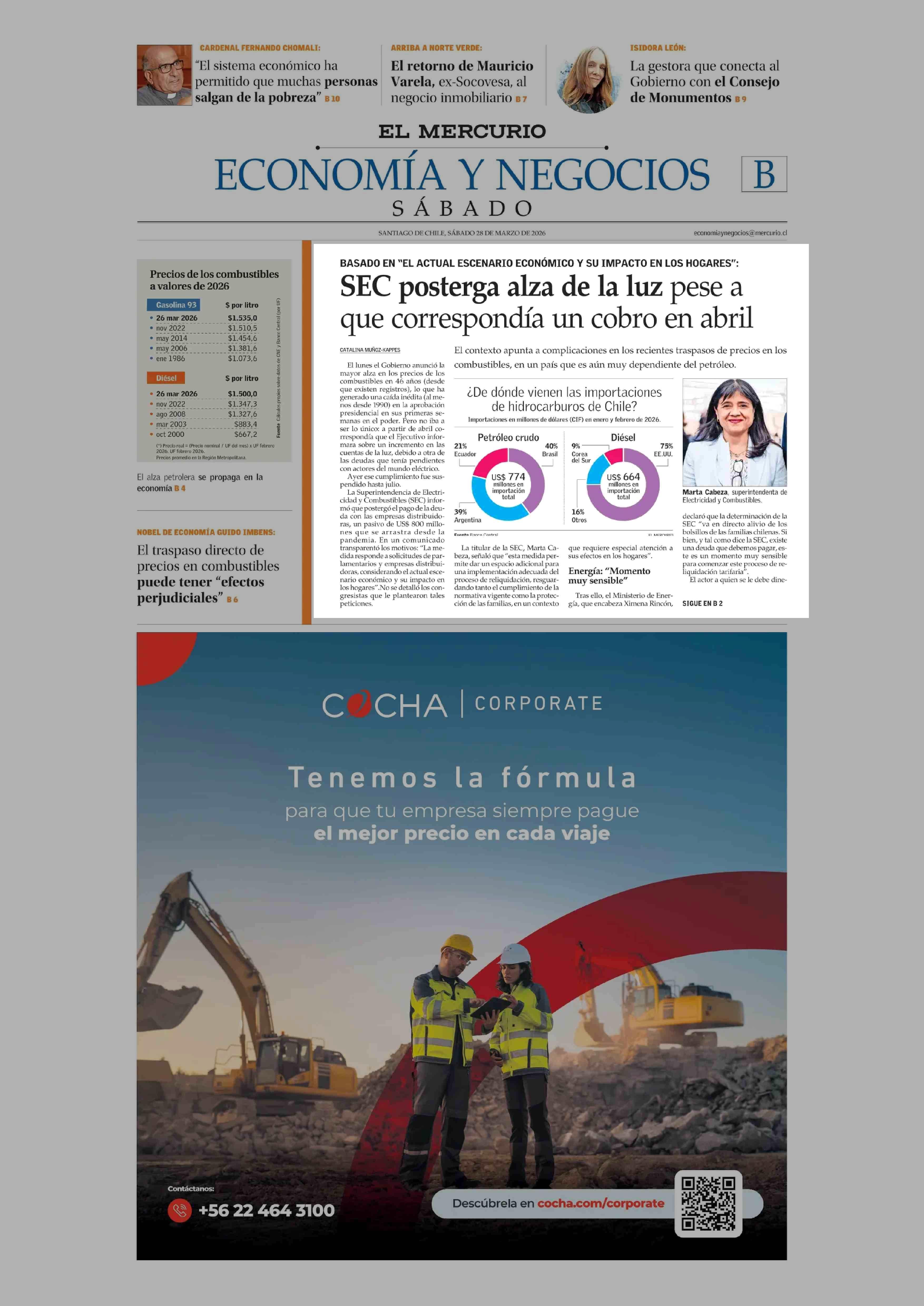 SEC posterga alza de la luz pese a que correspondía un cobro en abril 28-03-2026 El Mercurio |