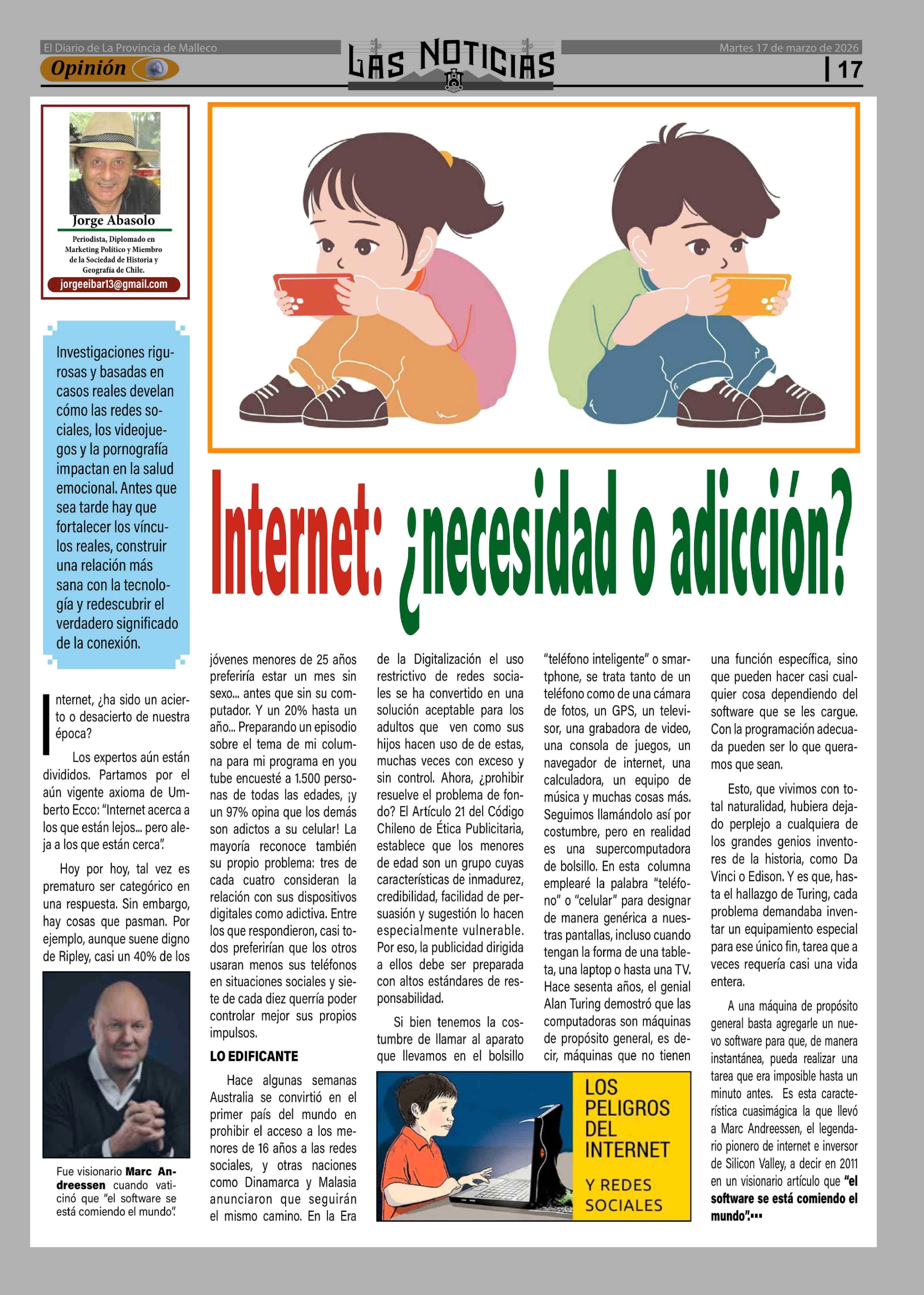 Internet: ¿ necesidad o adicción? 17-03-2026 Las Noticias |