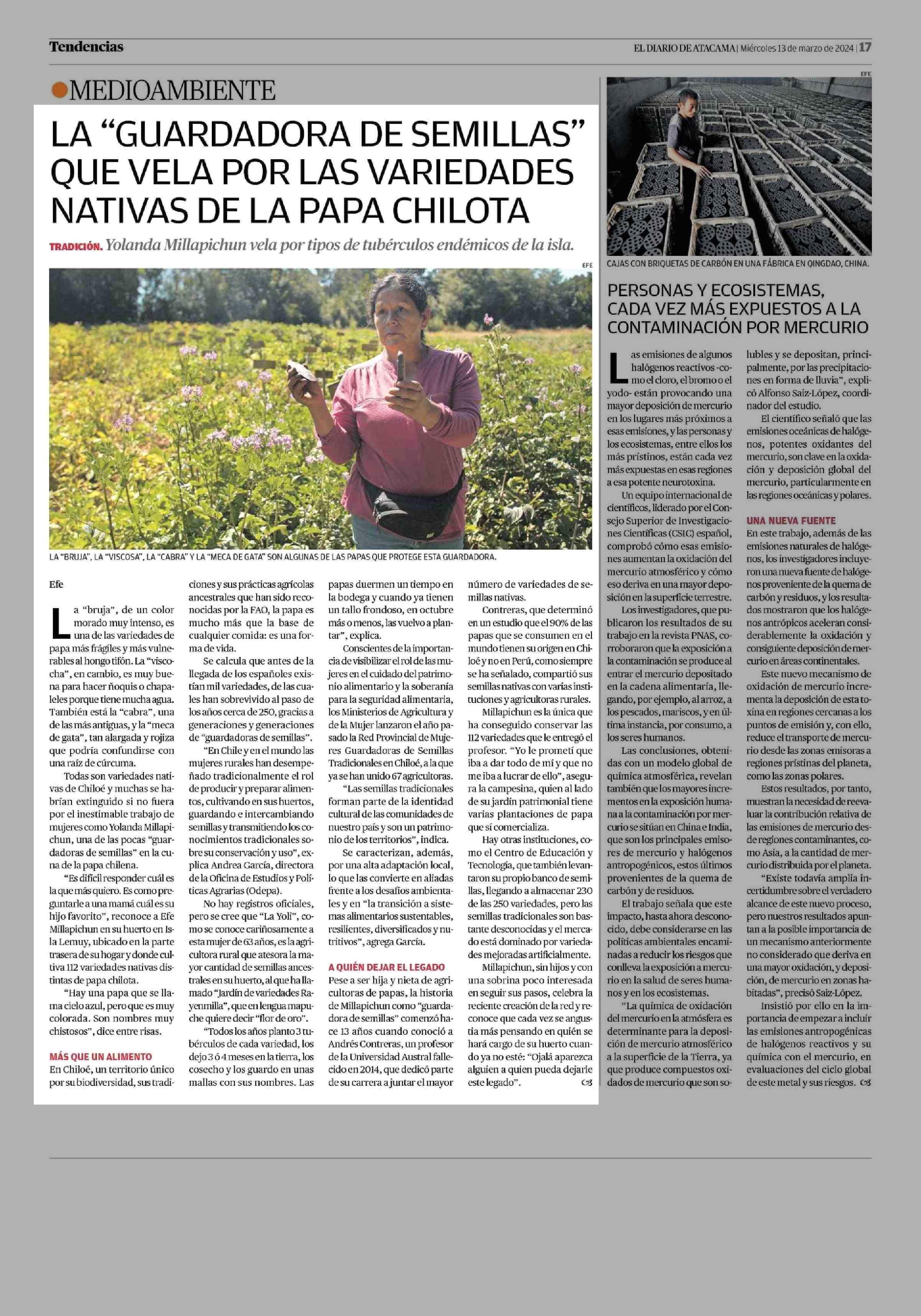 LA “GUARDADORA DE SEMILLAS” QUE VELA POR LAS VARIEDADES NATIVAS DE LA PAPA CHILOTA 13-03-2024 El Diario de Atacama |