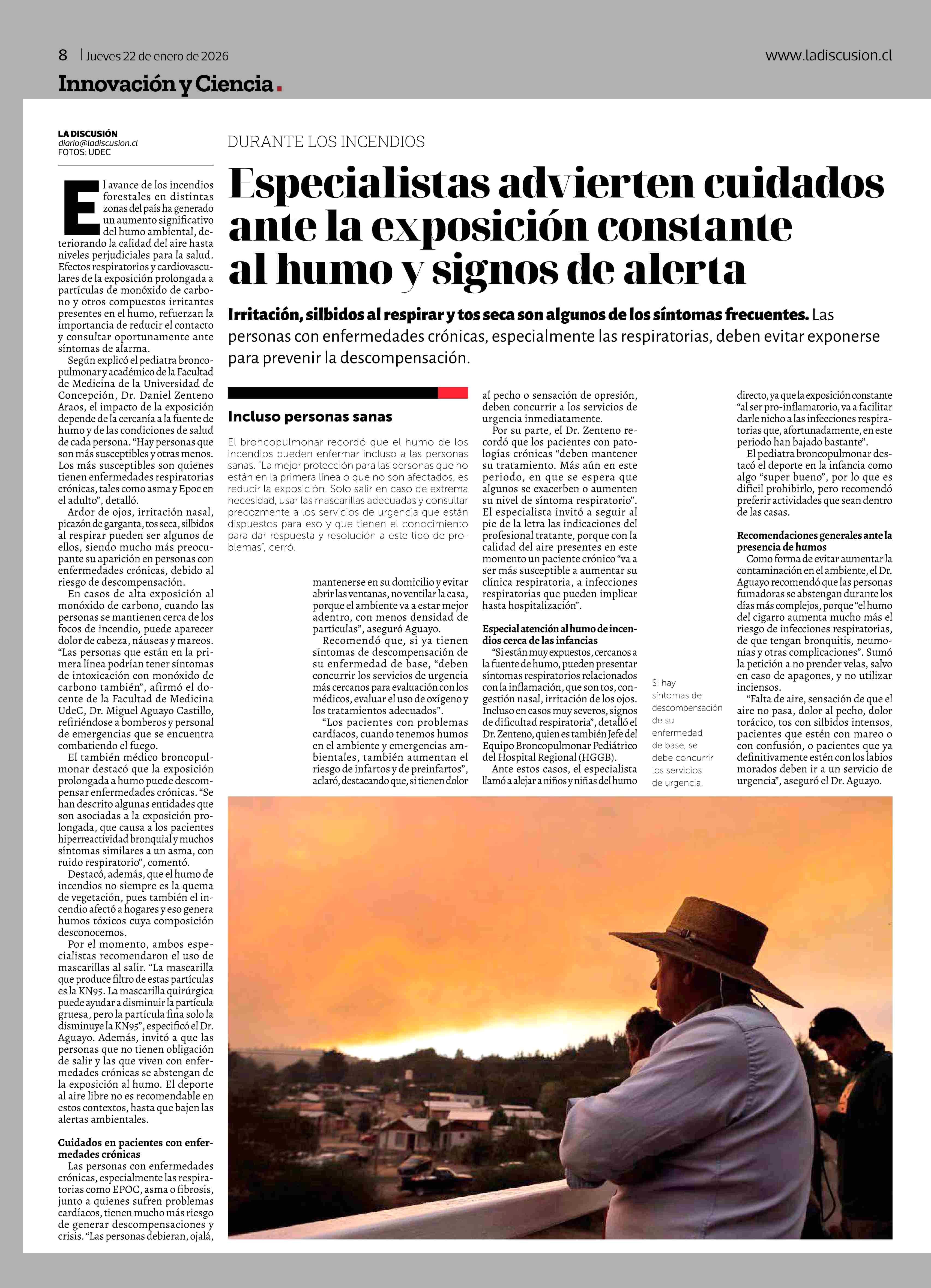 Especialistas advierten cuidados ante la exposición constante al humo y signos de alerta 22-01-2026 La Discusión |