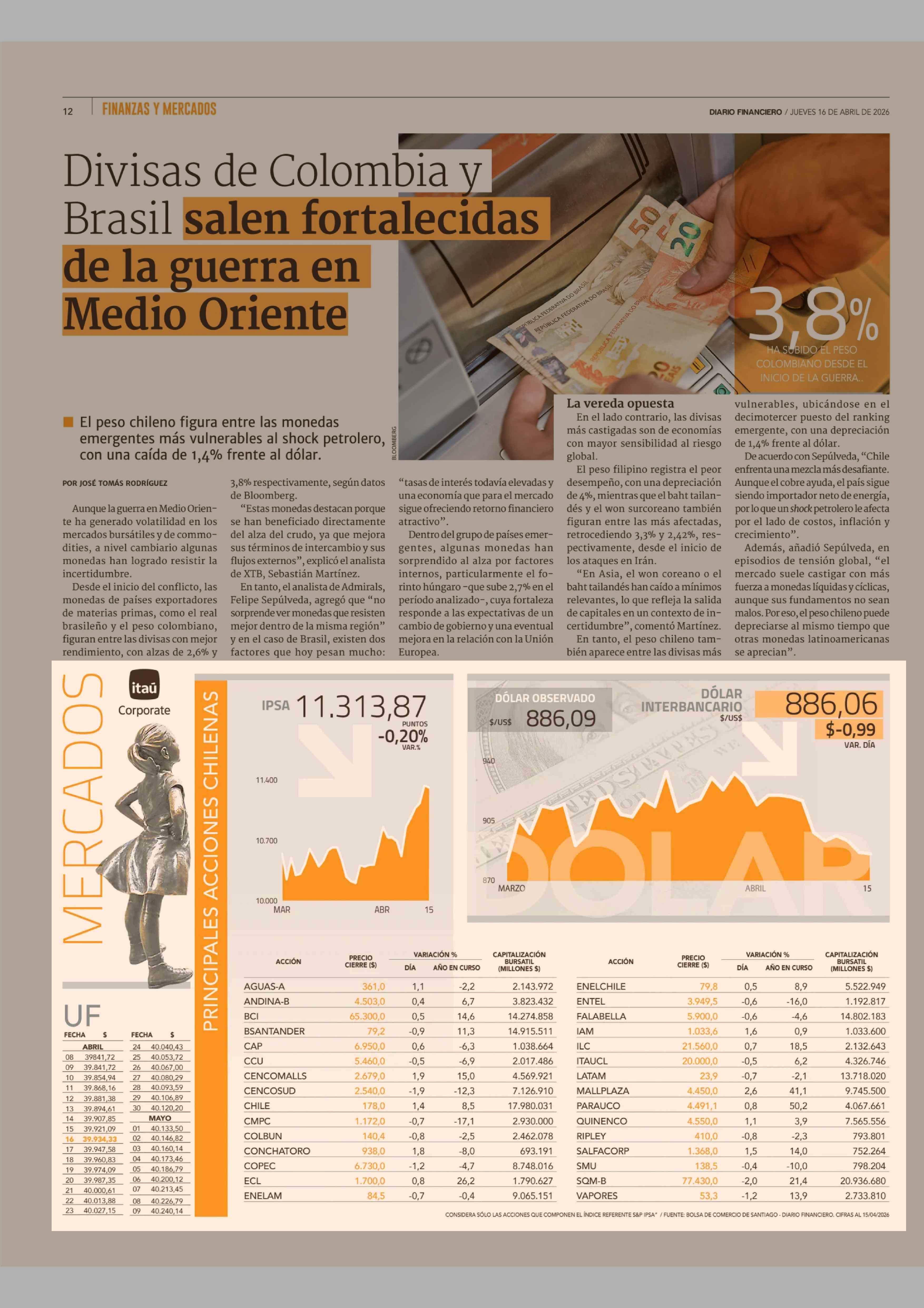 Fuente: Diario Financiero (Diario Financiero) Página(s): 12