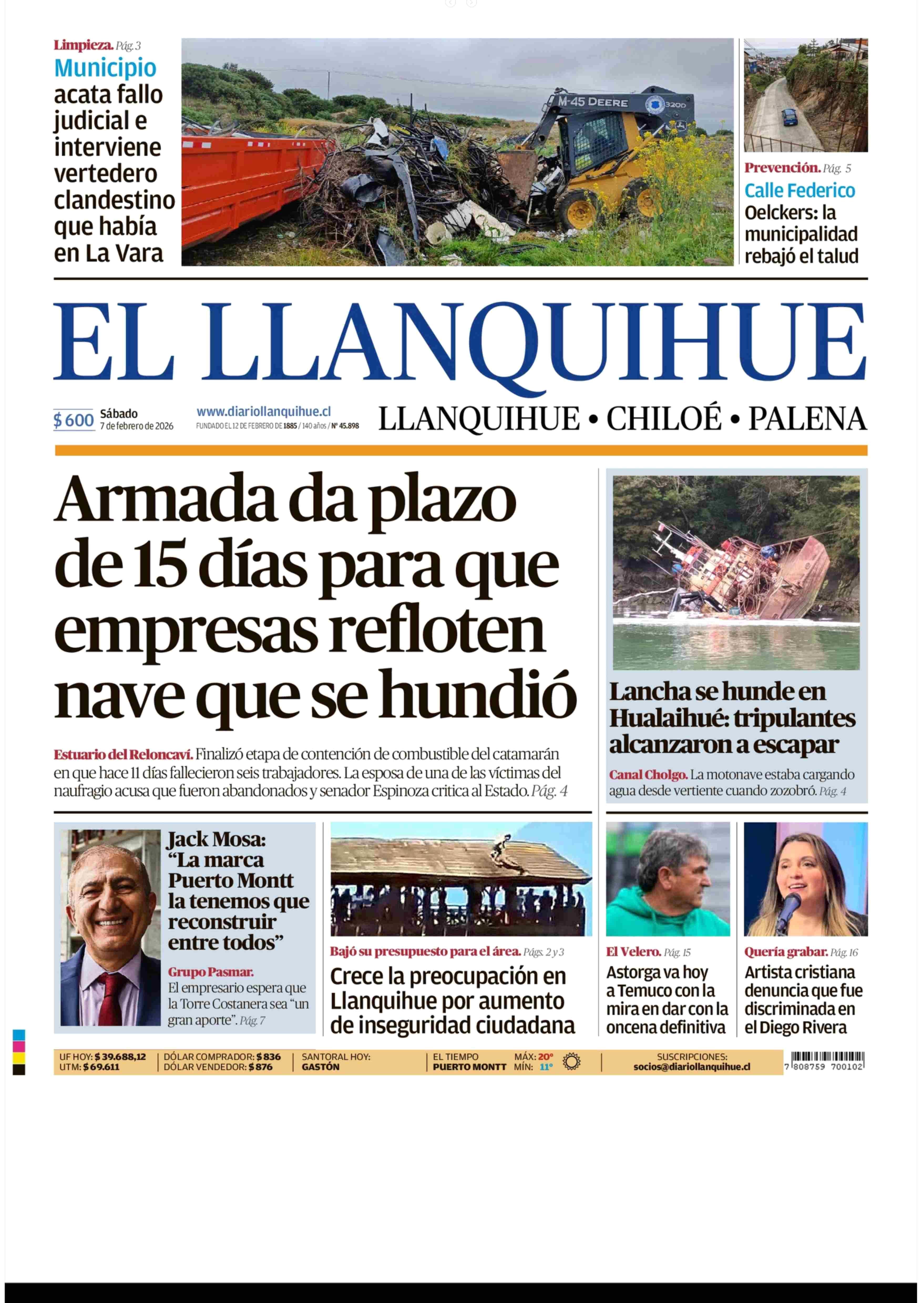 PORTADA EL LLANQUIHUE CHILE 07-02-2026 El Llanquihue |