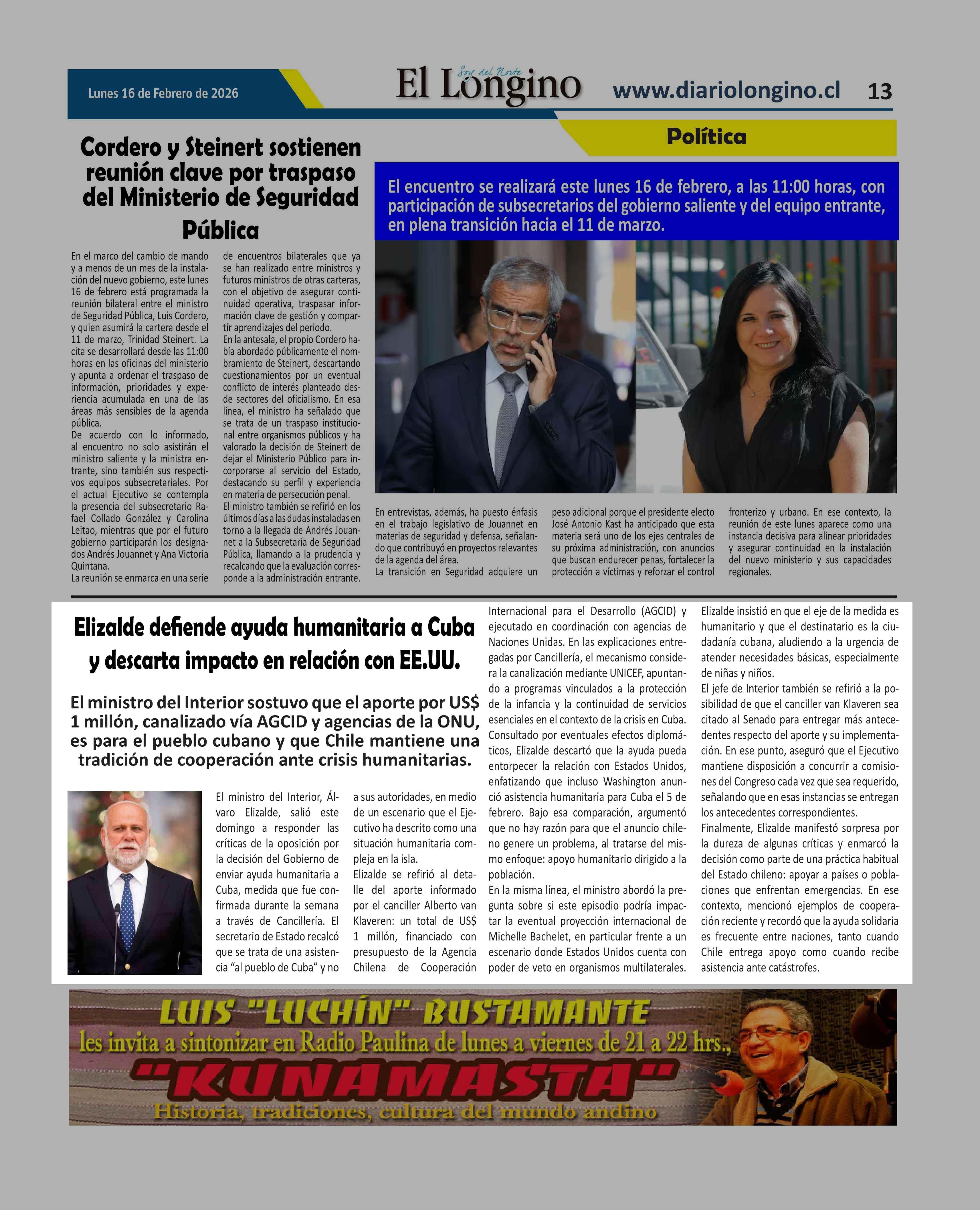 | Fecha: | 16-02-2026 | Sector: | Noticia general | Región: | Región de Tarapacá |