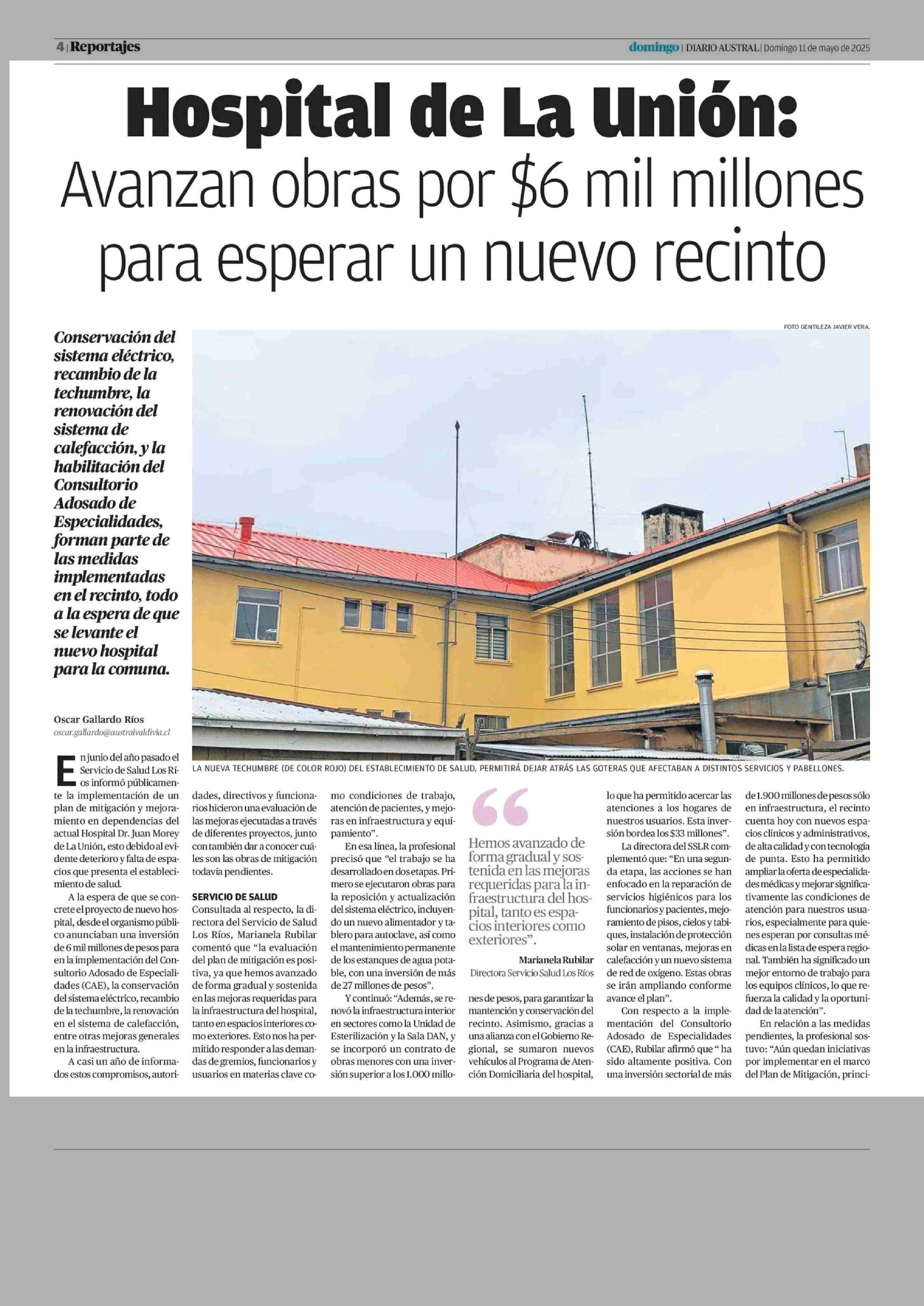 Hospital de La Unión: Avanzan obras por $6 mil millones para esperar un nuevo recinto 11-05-2025 Diario Austral Región de Los Ríos |