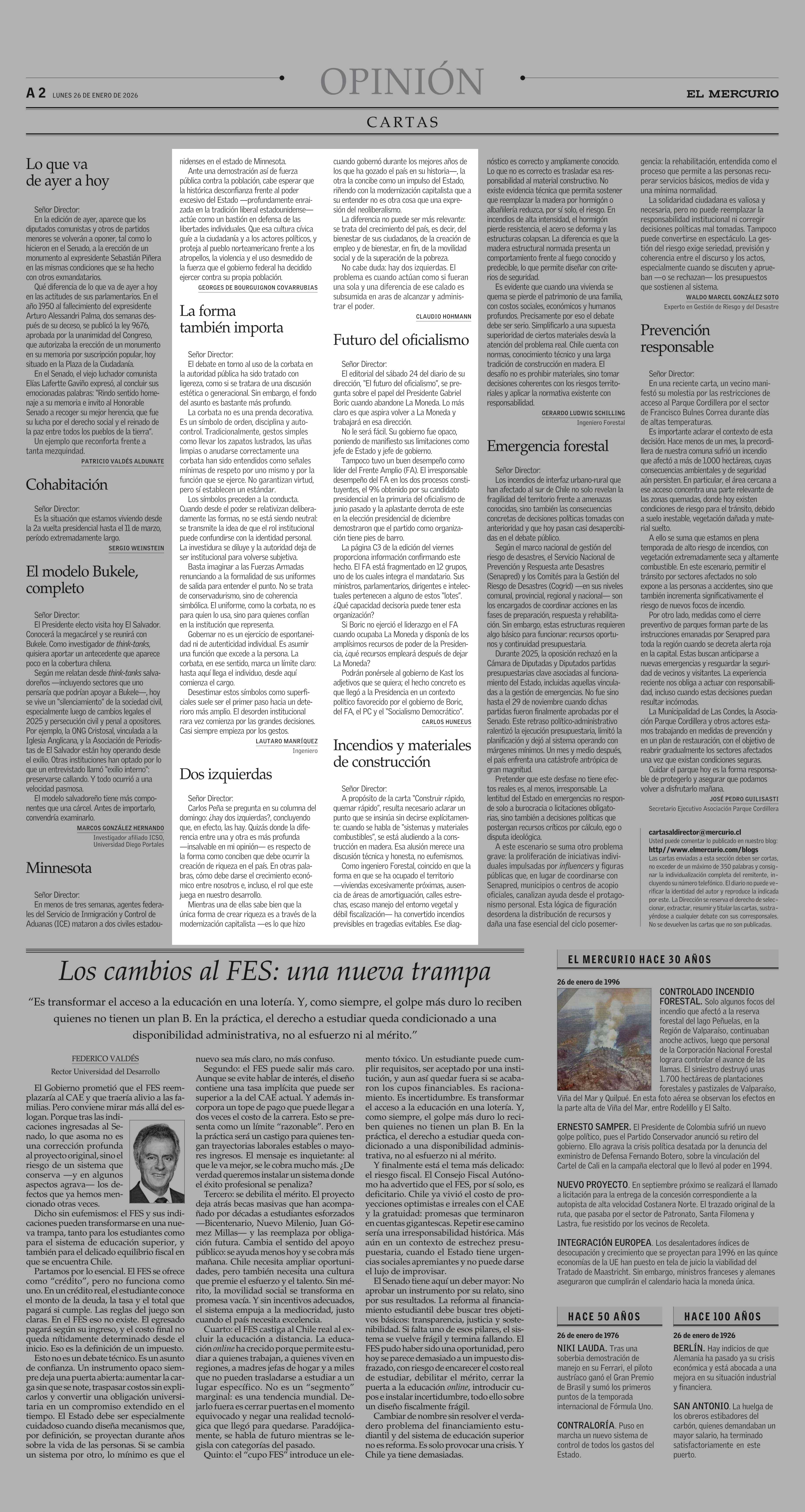 Cartas: Dos izquierdas 26-01-2026 El Mercurio |