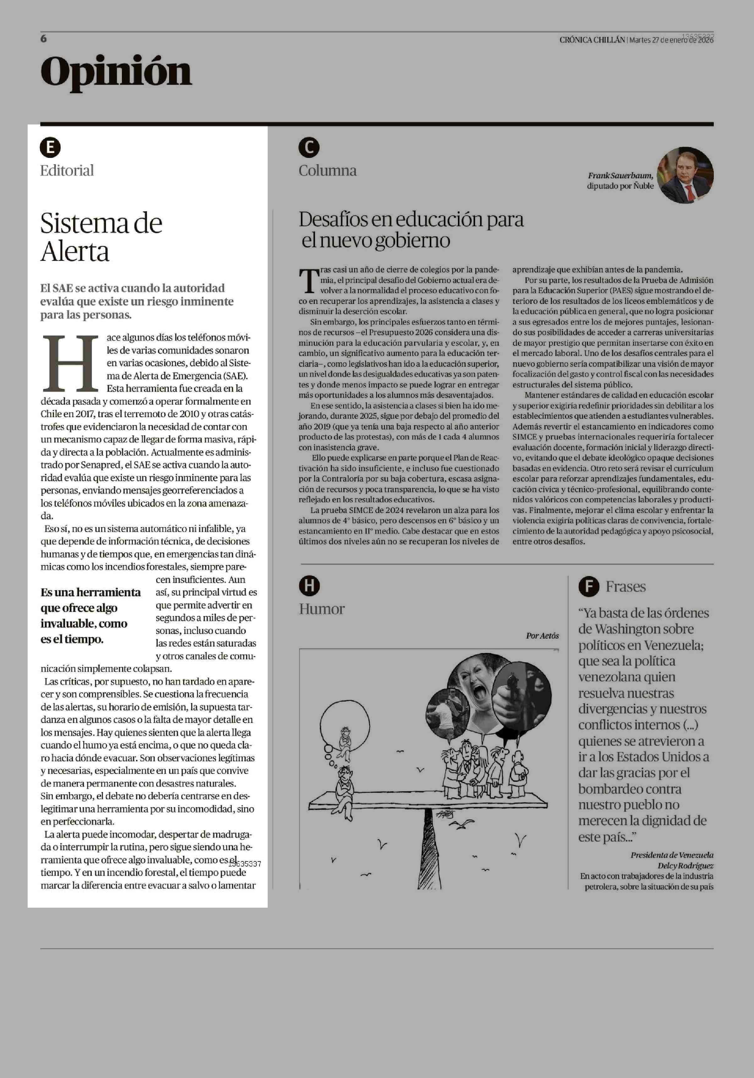 Editorial: Sistema de Alerta 27-01-2026 Crónica de Chillán |