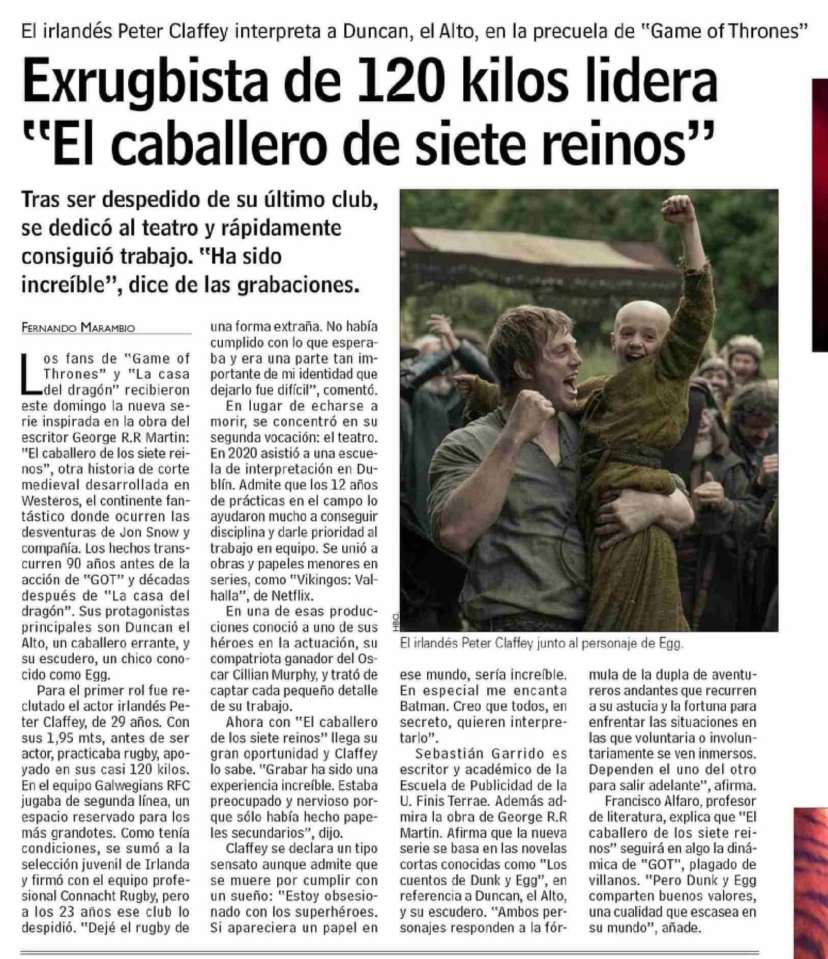 Exrugbista de 120 kilos lidera "El caballero de siete reinos" 20-01-2026 Las Últimas Noticias |