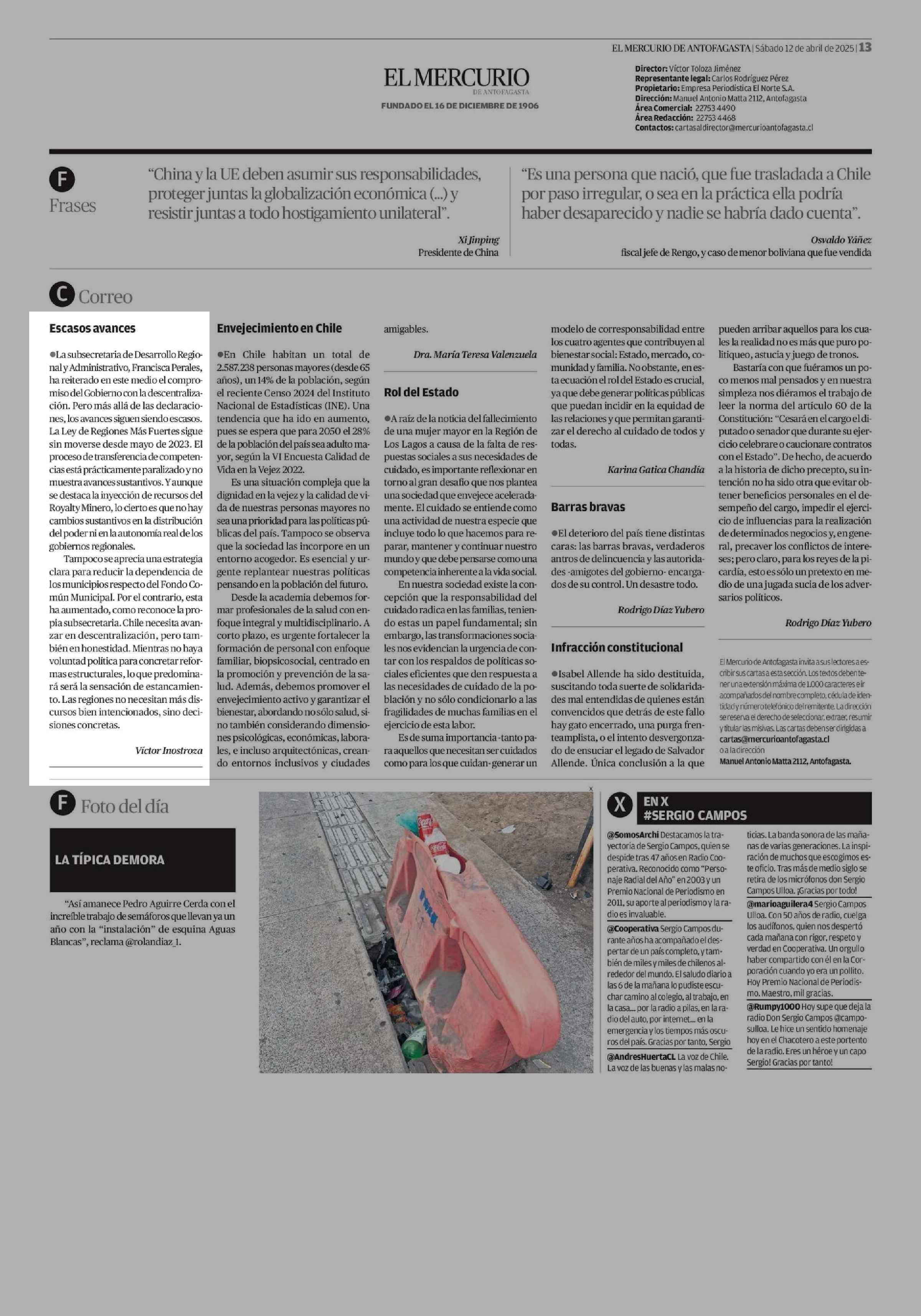 Escasos avances 12-04-2025 El Mercurio de Antofagasta |