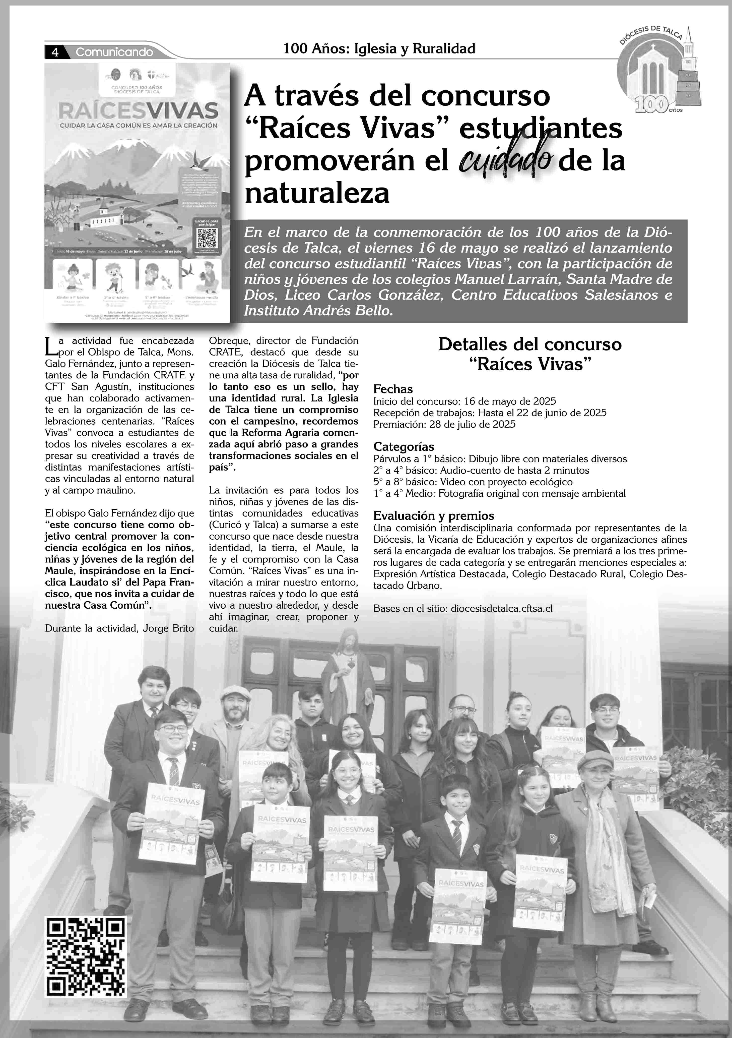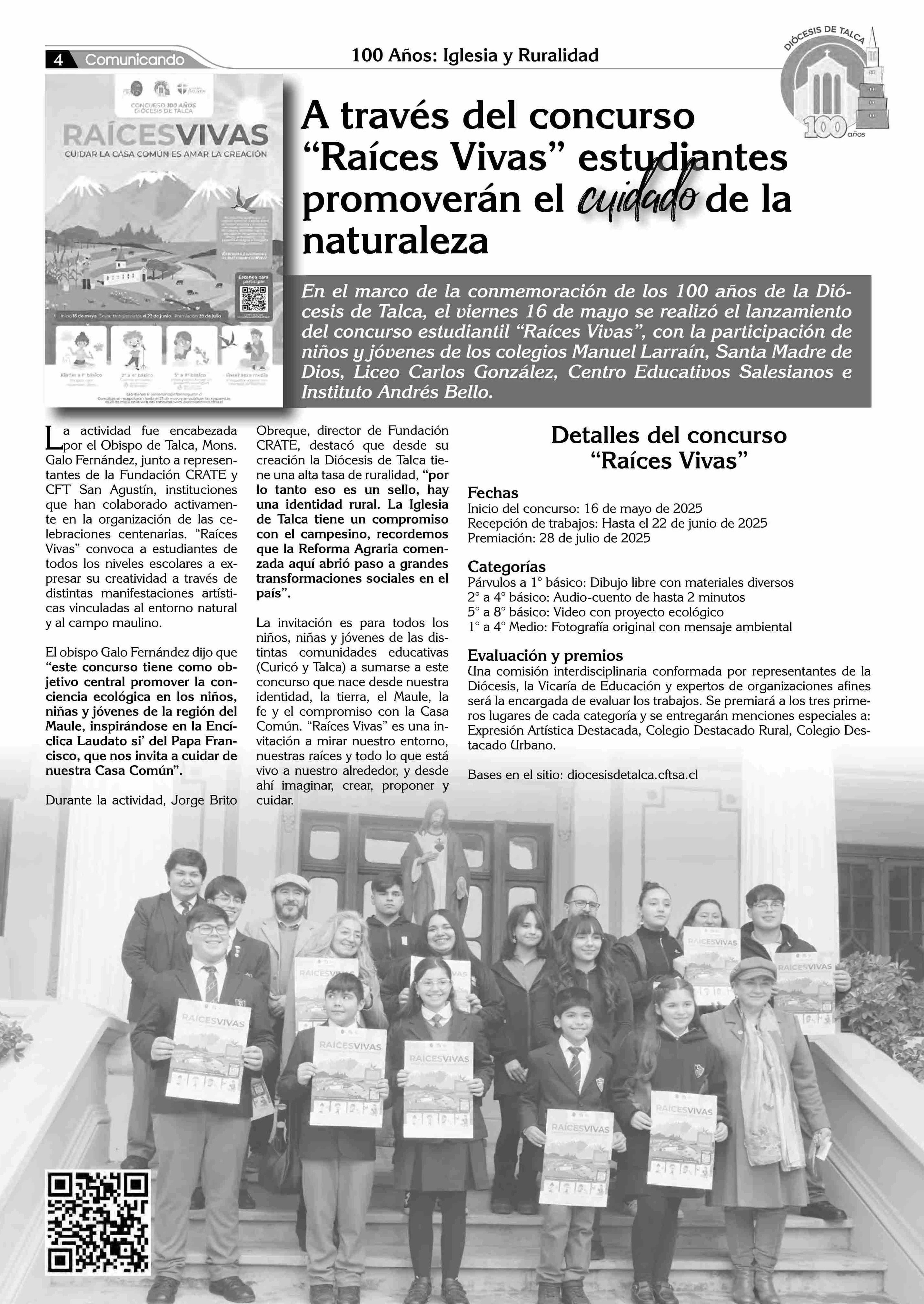 A través del concurso “Raíces Vivas” esti1jantes promoverán el de la naturaleza 12-06-2025 Comunicando - Diócesis de San Agustín de Talca |