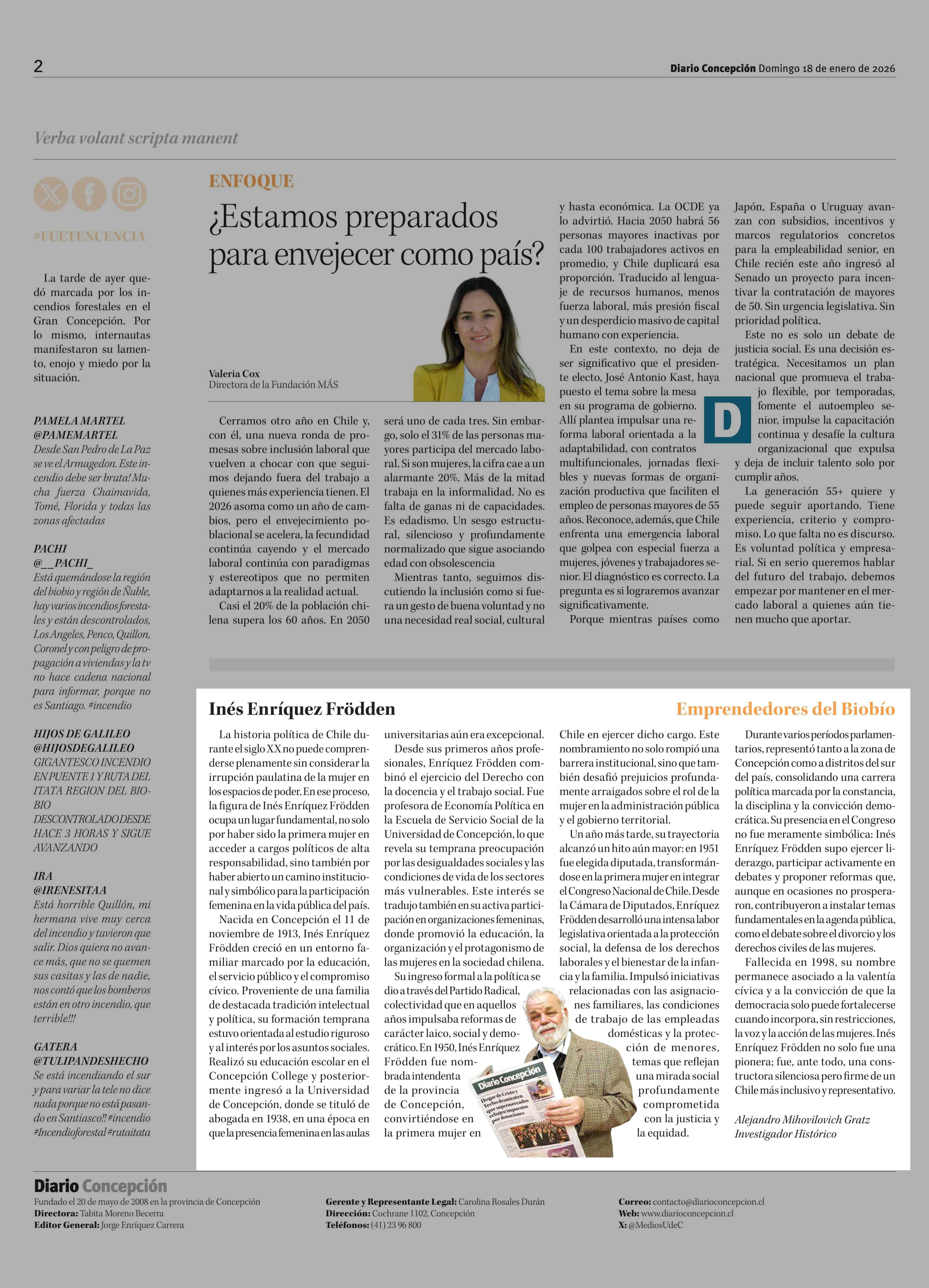 Columnas de Opinión: Inés Enríquez Frödden 18-01-2026 Diario Concepción |