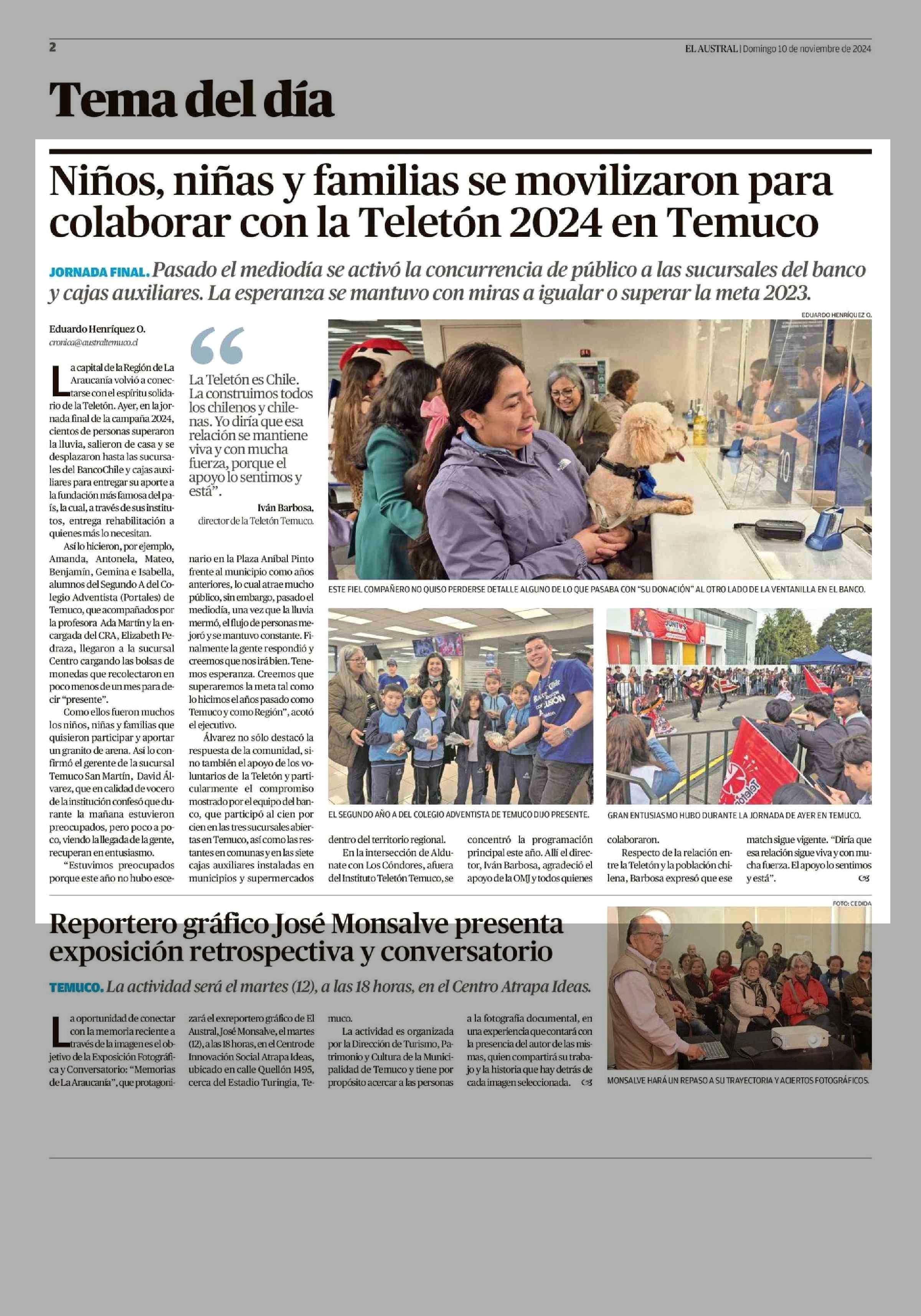 Niños, niñas y familias se movilizaron para colaborar con la Teletón 2024 en Temuco 10-11-2024 El Austral de la Araucanía |
