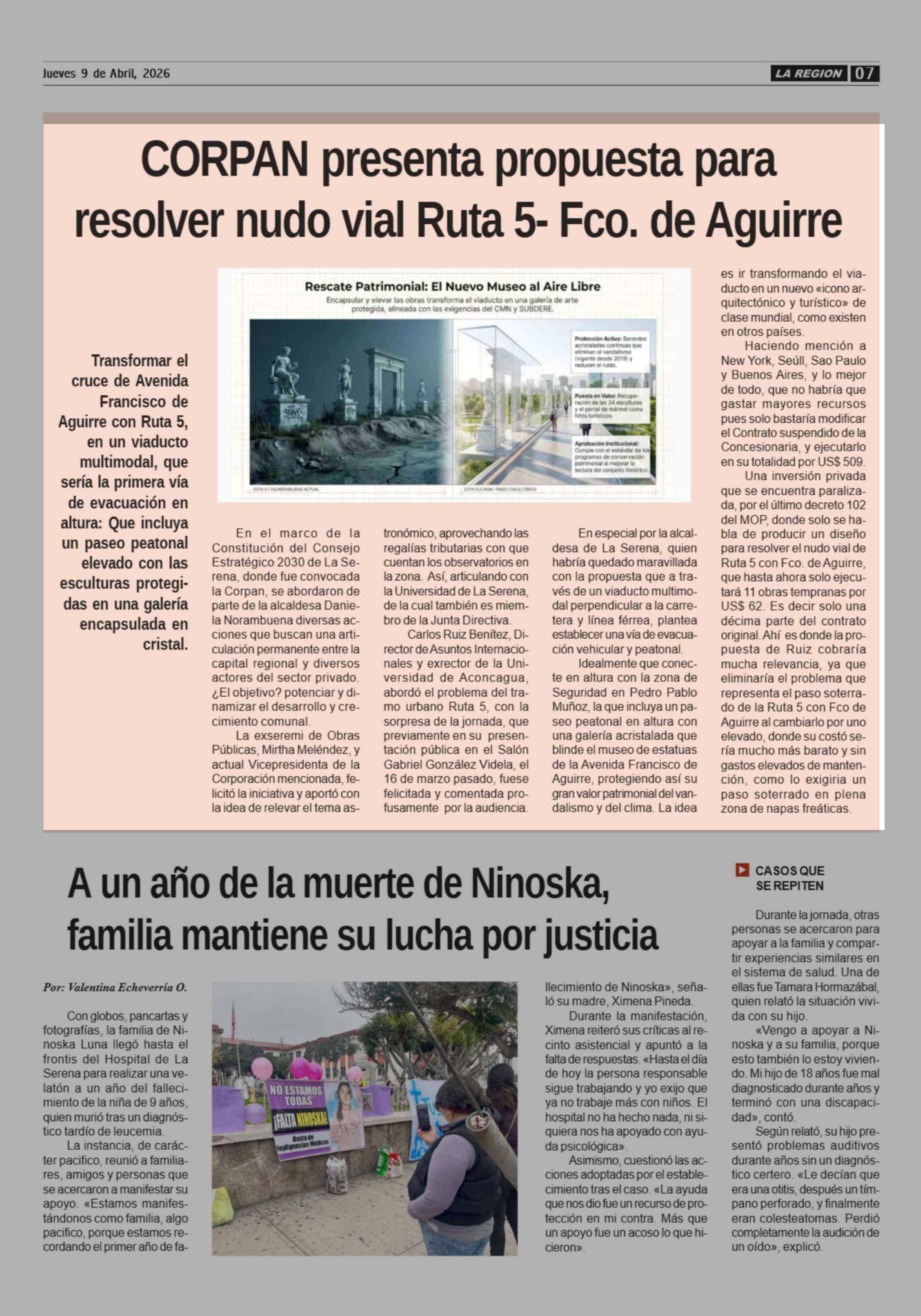 CORPAN presenta propuesta para resolver nudo vial Ruta 5- Fco. de Aguirre 09-04-2026 Diario la Región |