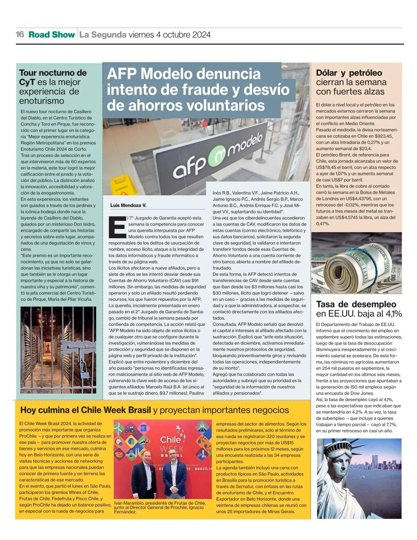 Hoy culmina el Chile Week Brasil y proyectan importantes negocios 04-10-2024 La Segunda |