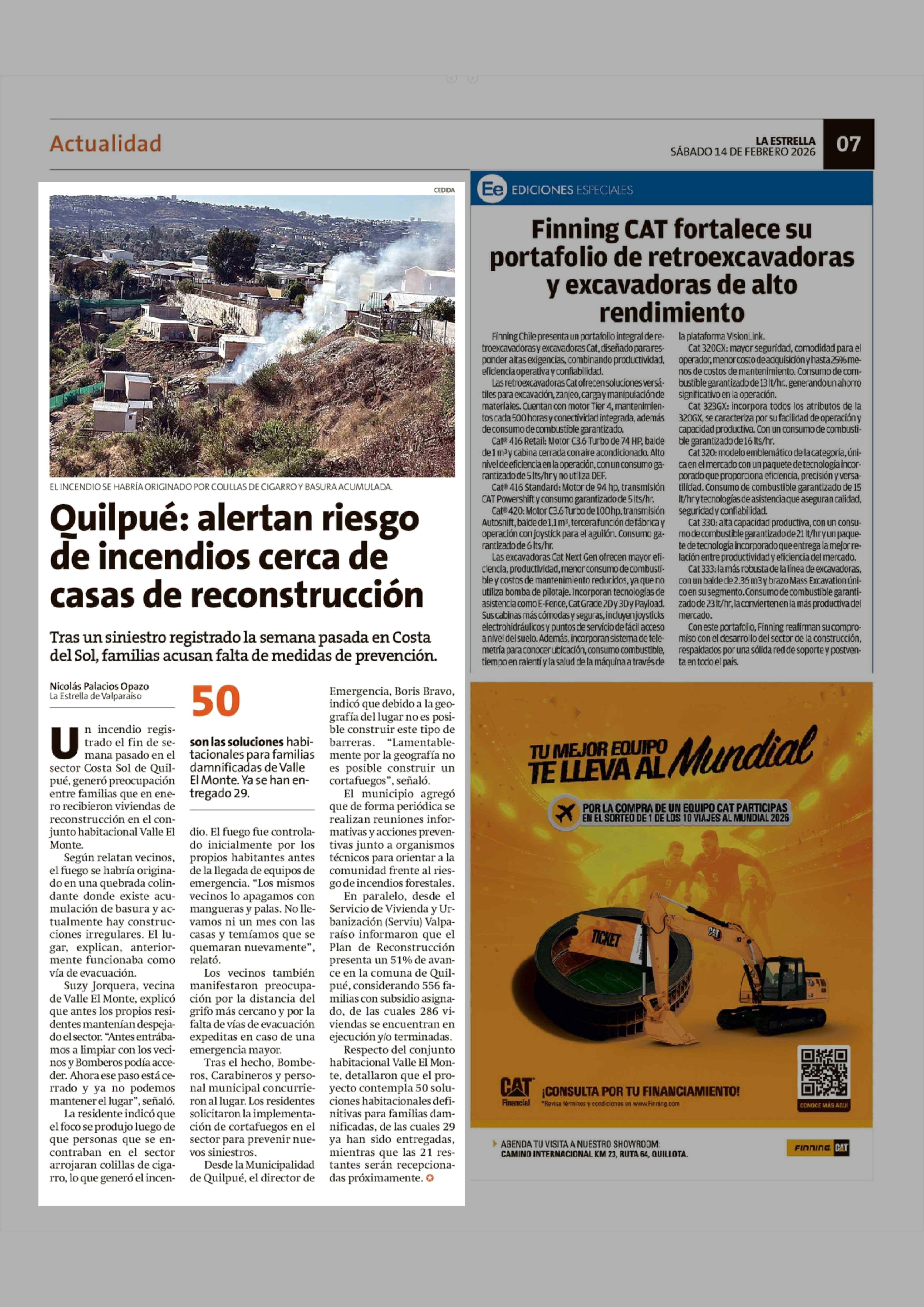 Quilpué: alertan riesgo de incendios cerca de casas de reconstrucción 14-02-2026 La Estrella de Valparaíso |