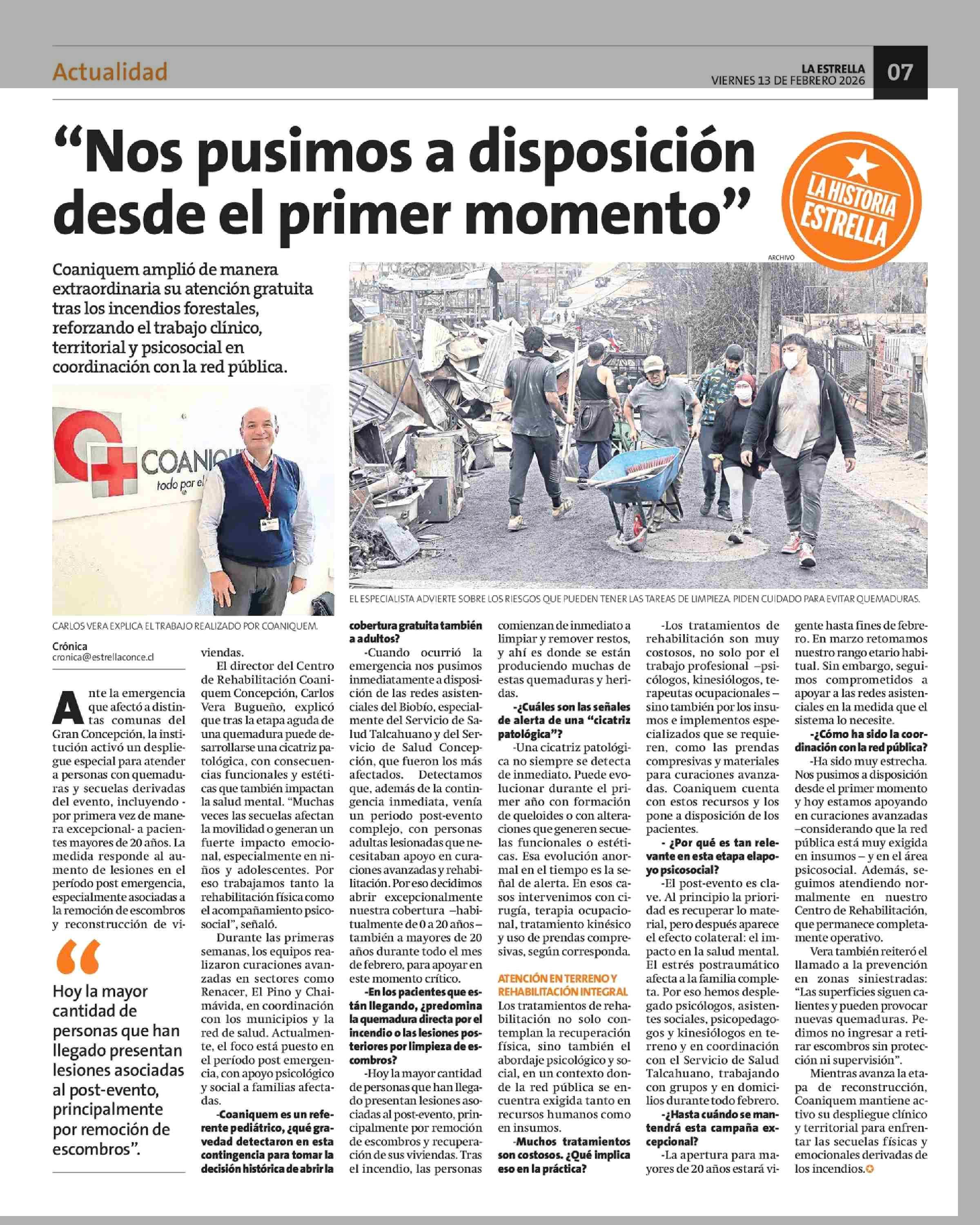 “Nos pusimos a disposición desde el primer momento” 13-02-2026 La Estrella de Concepción |