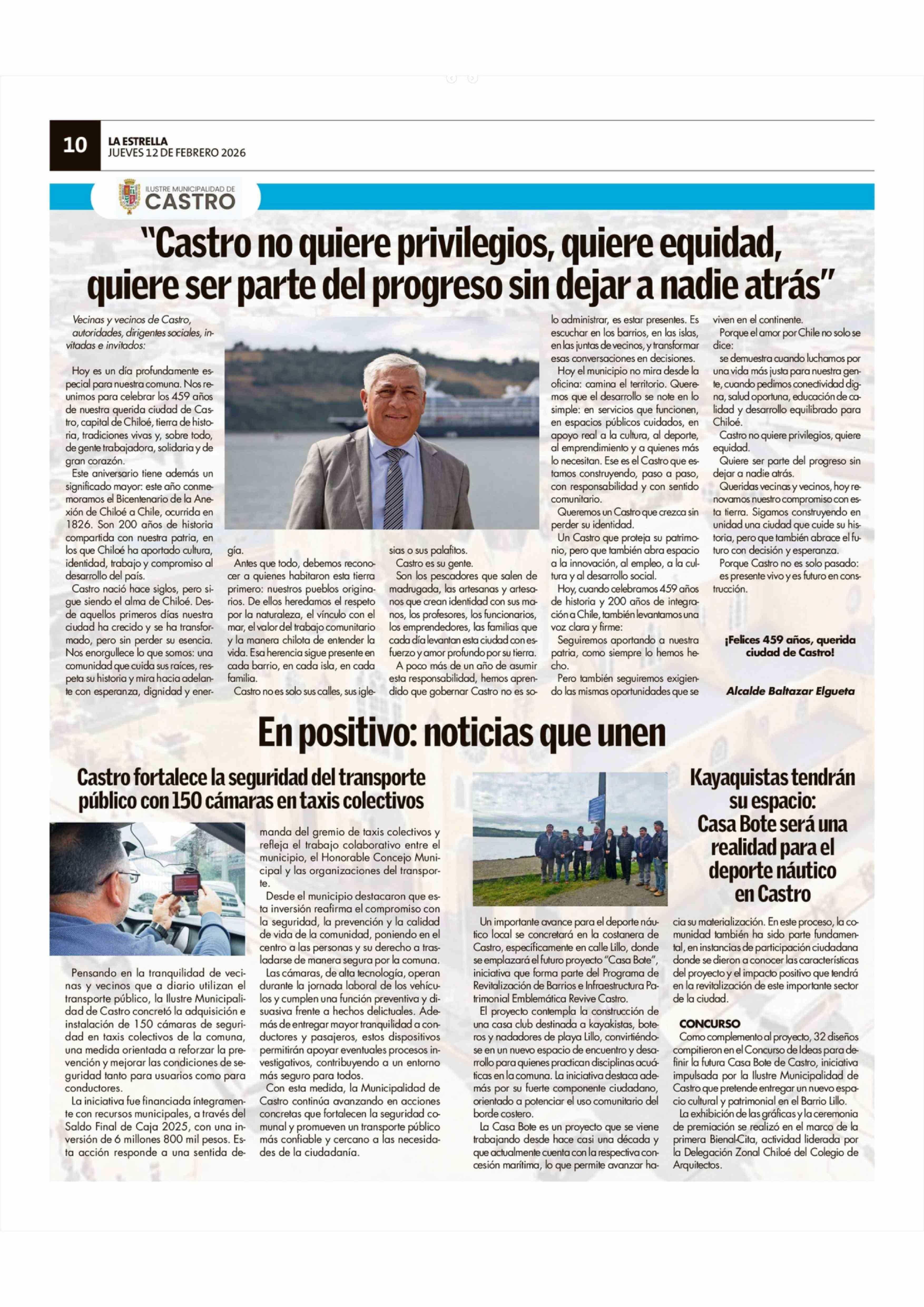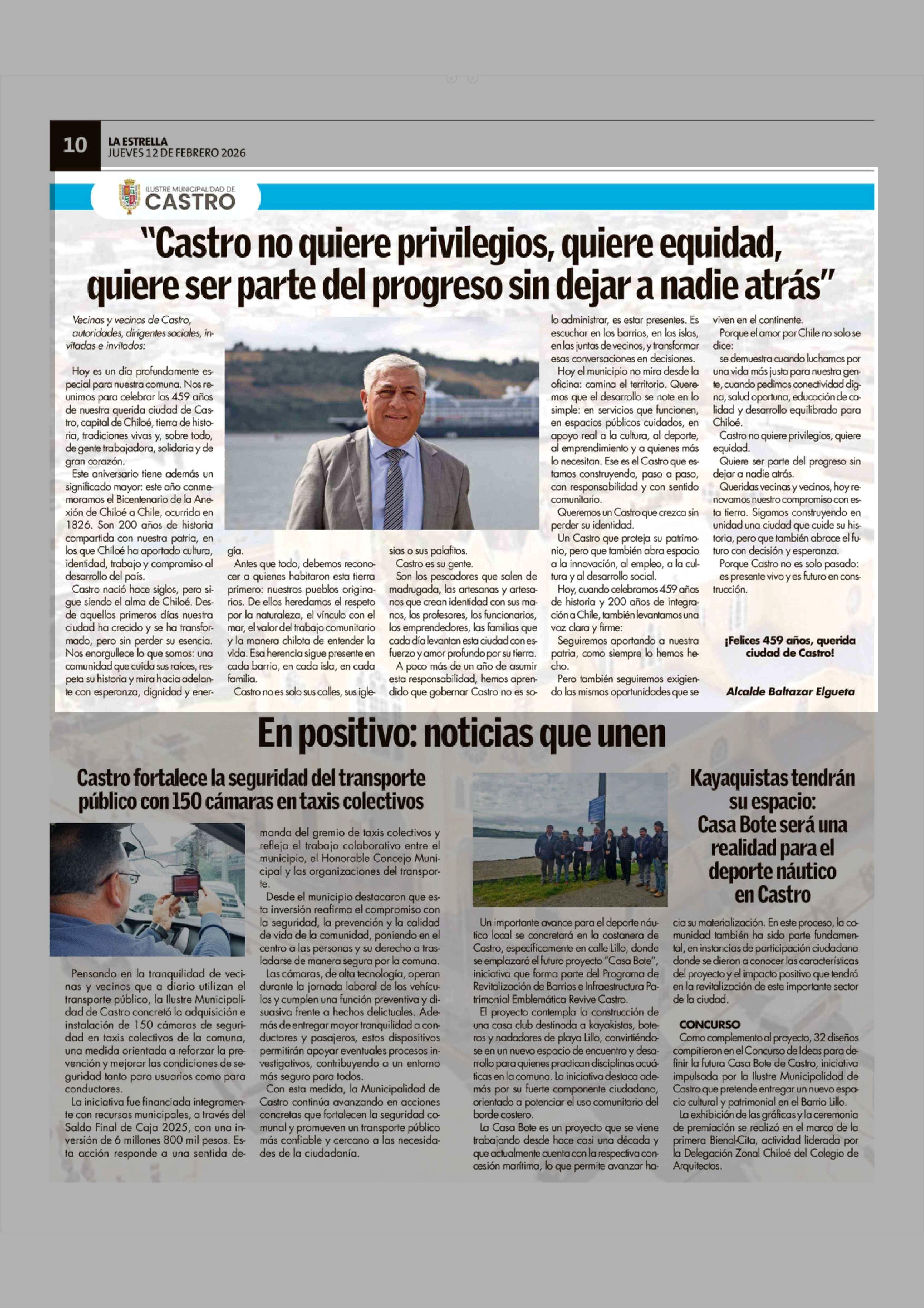 "Castro no quiere privilegios, quiere equidad, quiere ser parte del progreso sin dejar a nadie atrás" 12-02-2026 La Estrella de Chiloé |