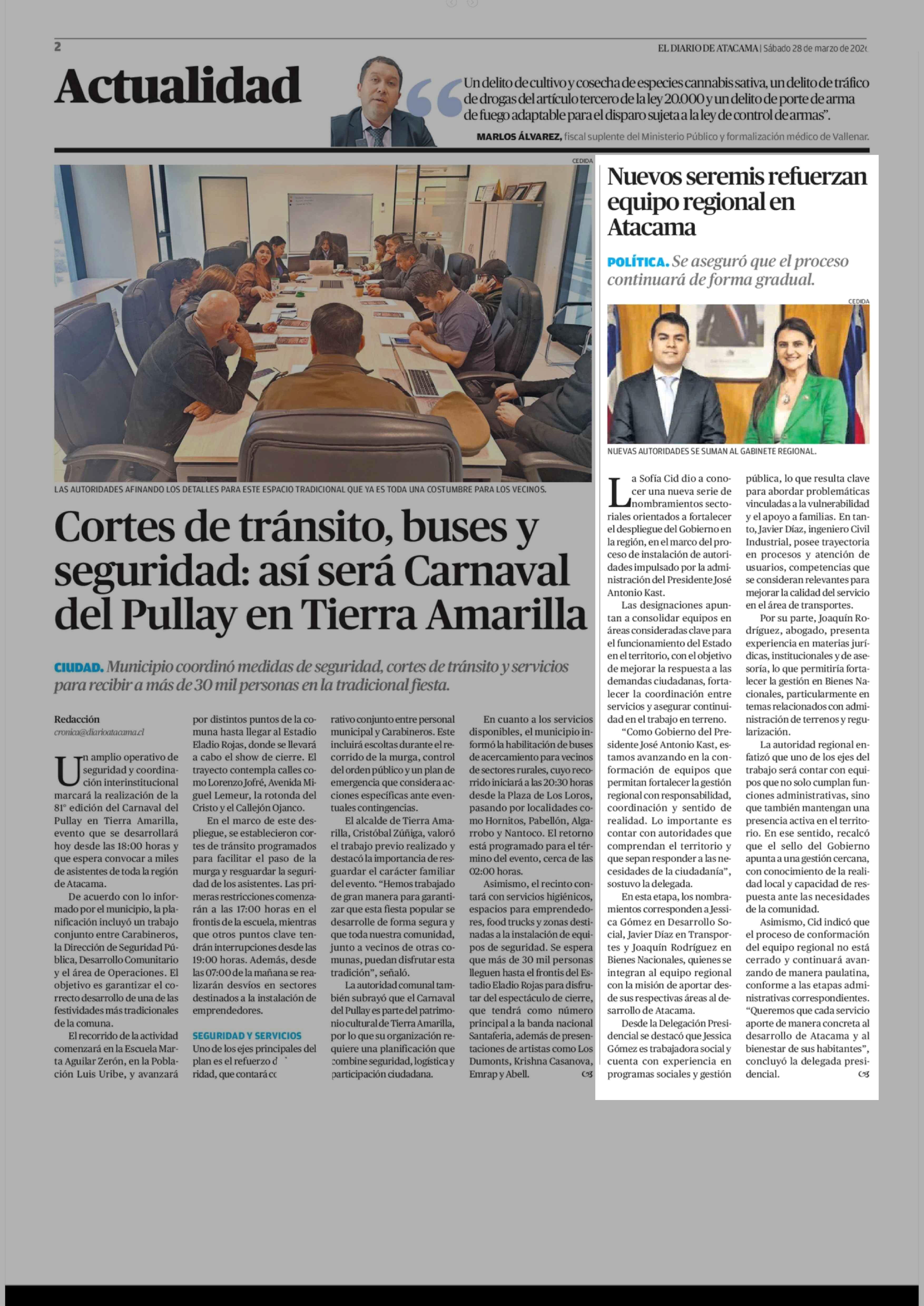 Nuevos seremis refuerzan equipo regional en Atacama 28-03-2026 El Diario de Atacama |
