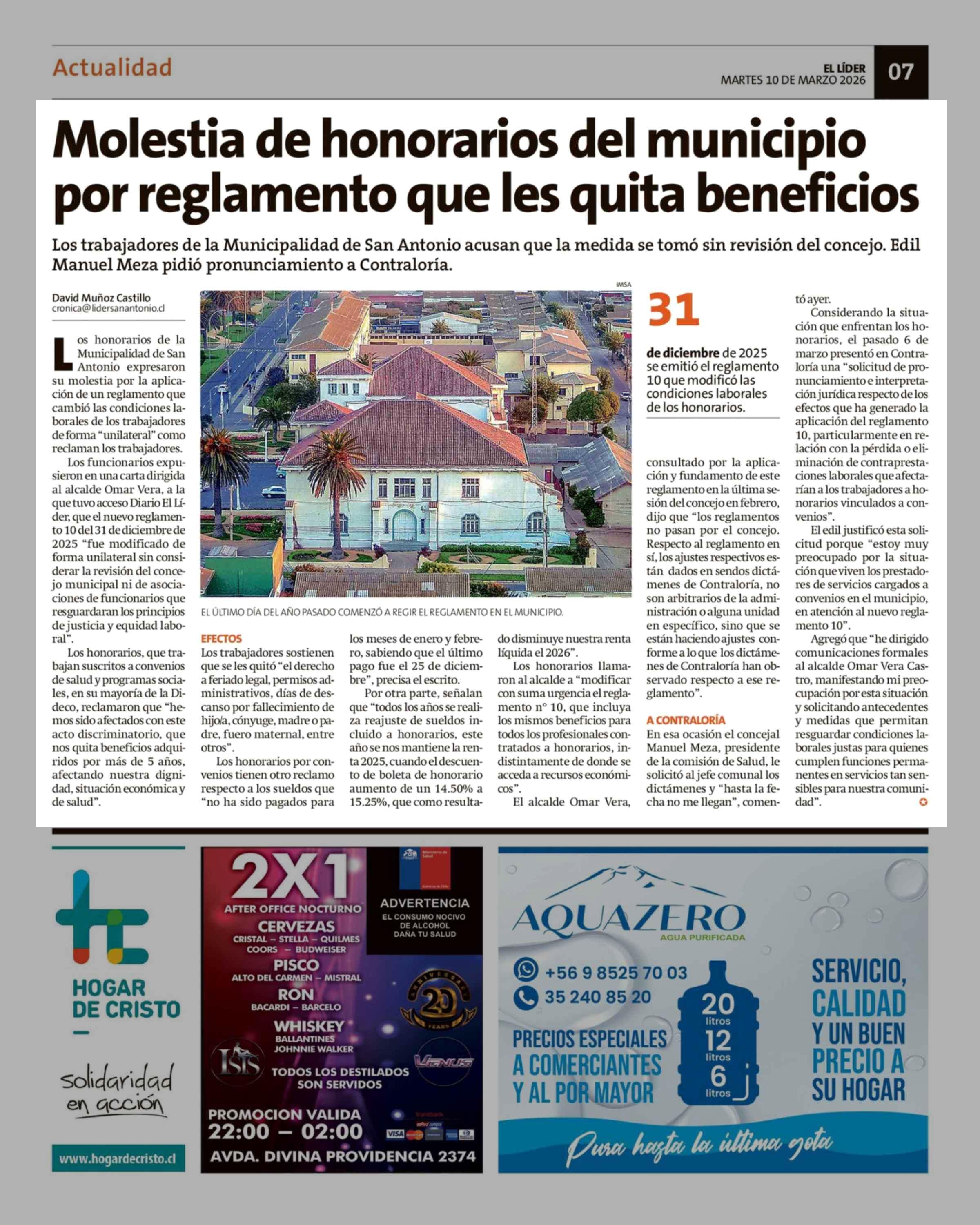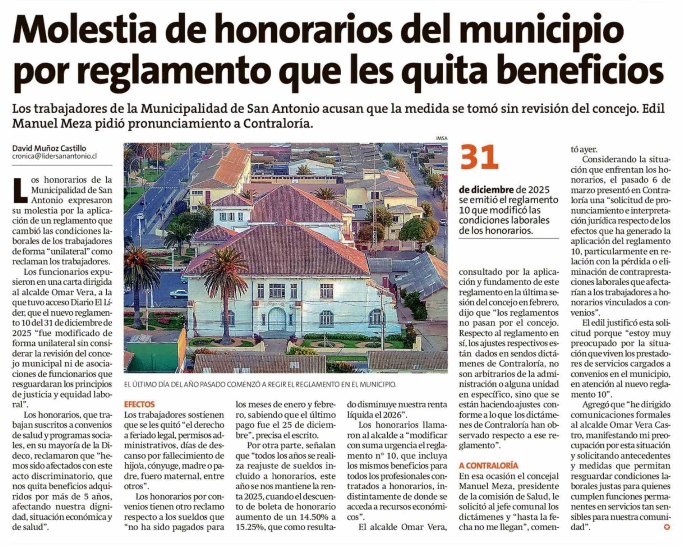 Molestia de honorarios del municipio por reglamento que les quita beneficios 10-03-2026 El Líder |