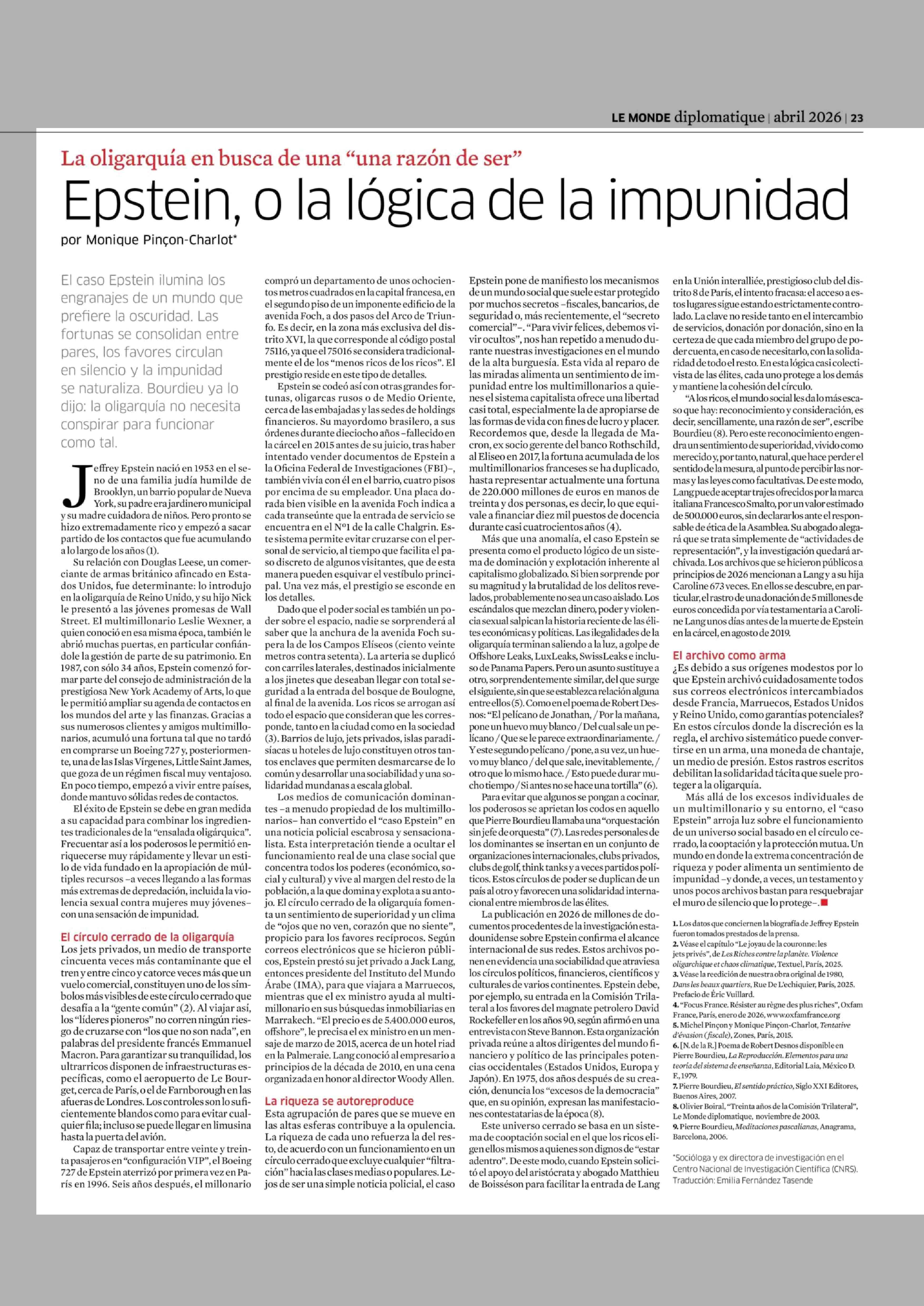 Epstein, O la lógica de la Impunidad 07-04-2026 Le Monde Diplomatique |