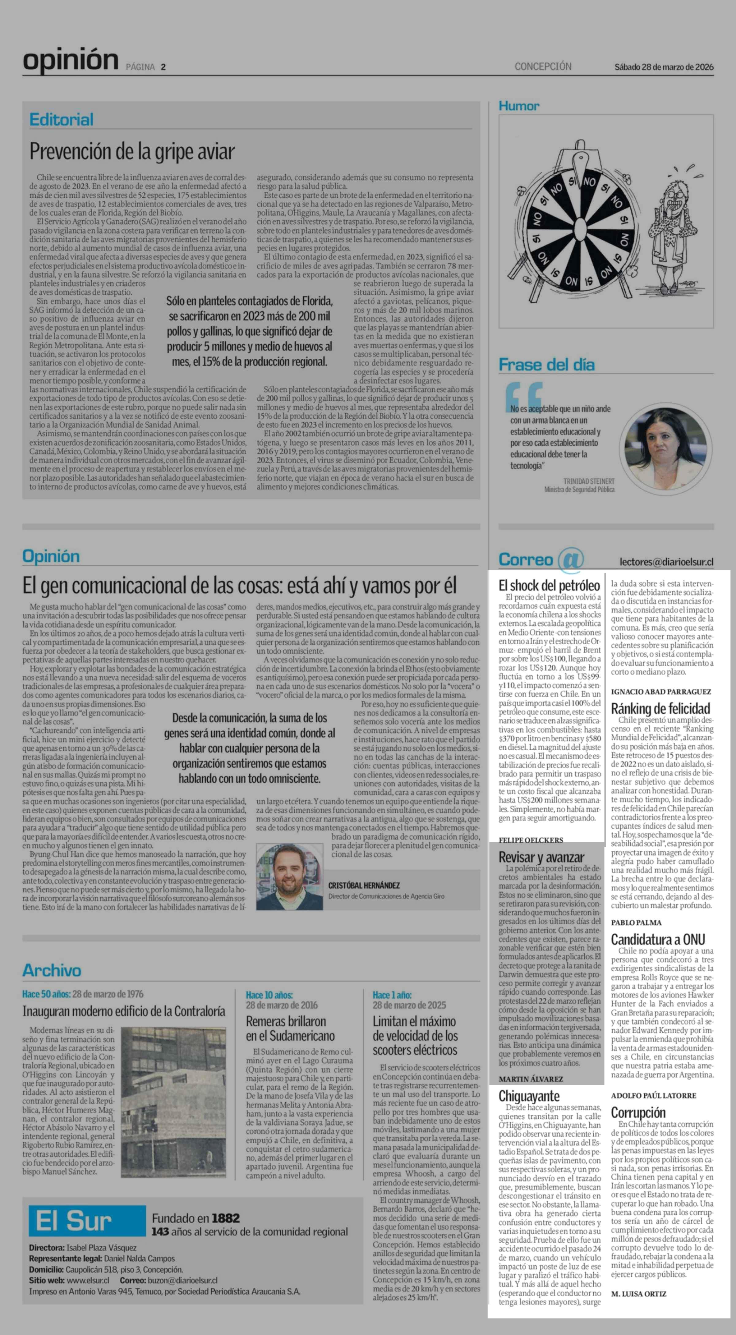 CARTAS: Chiguayante 28-03-2026 El Sur |