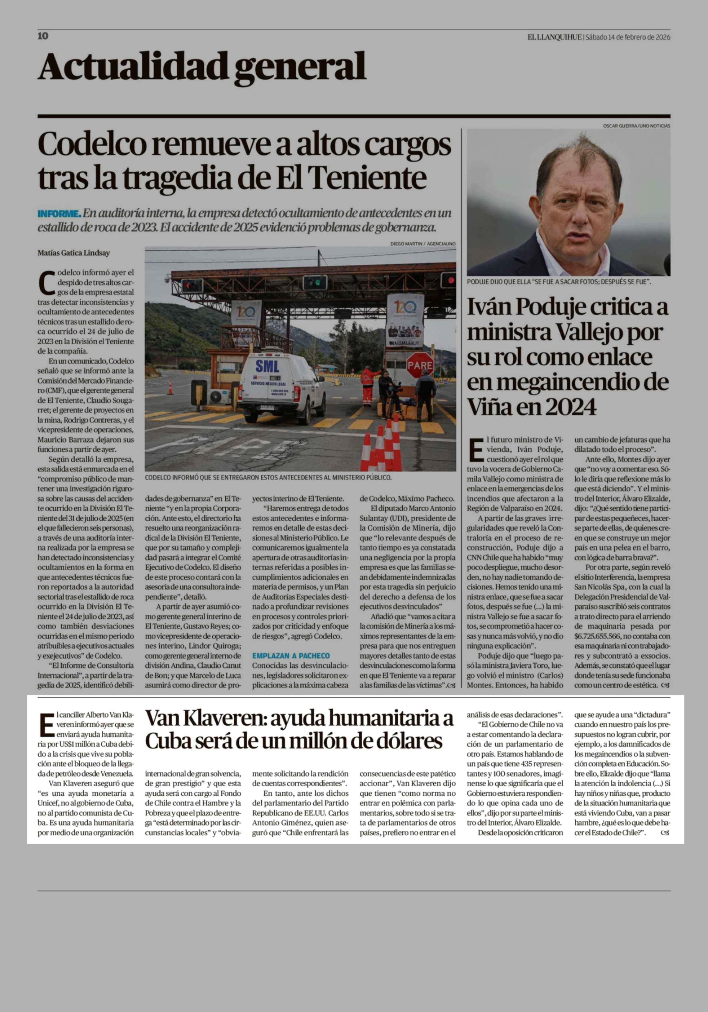 Van Klaveren: ayuda humanitaria a Cuba será de un millón de dólares 14-02-2026 El Llanquihue |