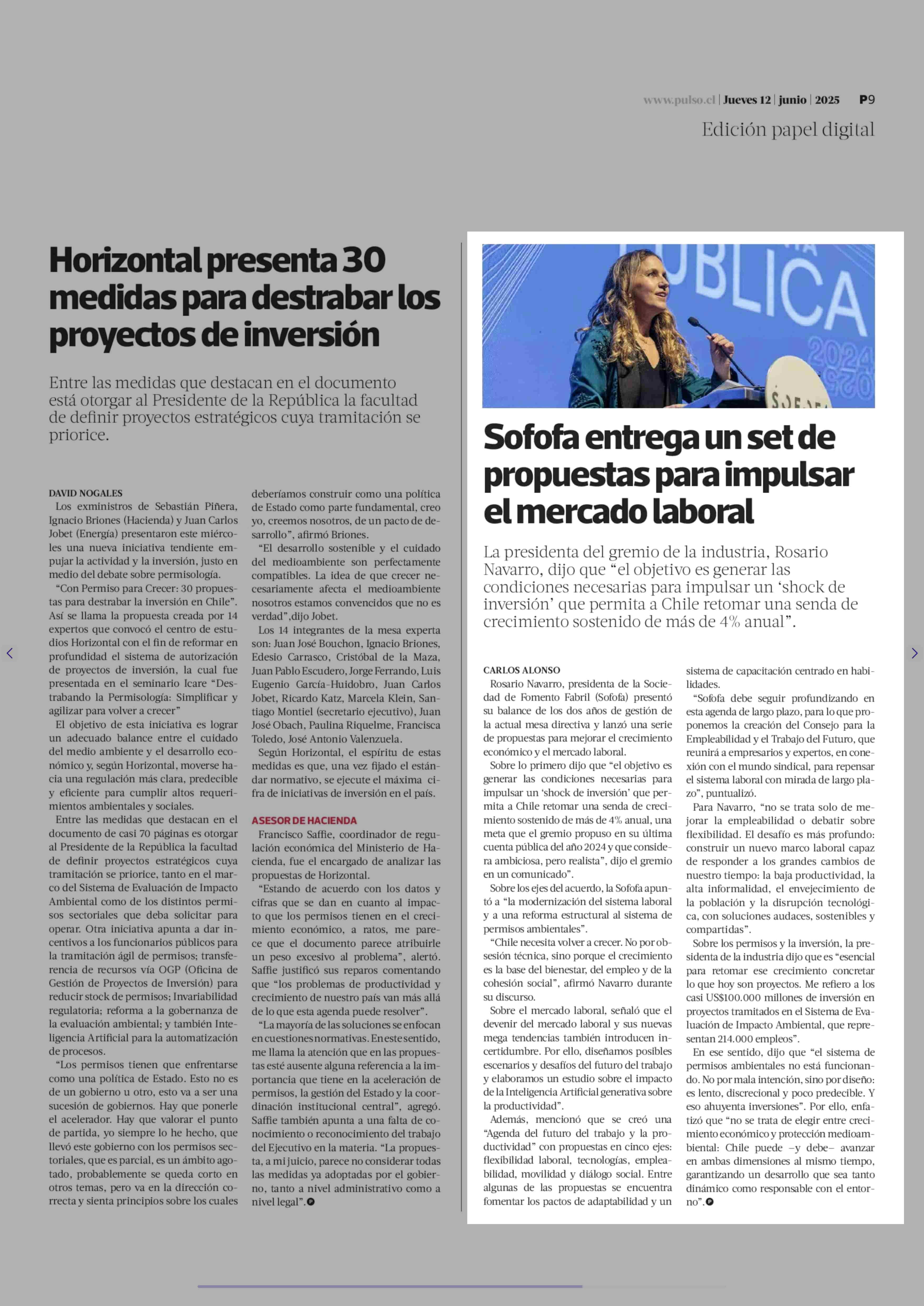 Sofofa entrega un set de propuestas para impulsar el mercado laboral 12-06-2025 La Tercera |
