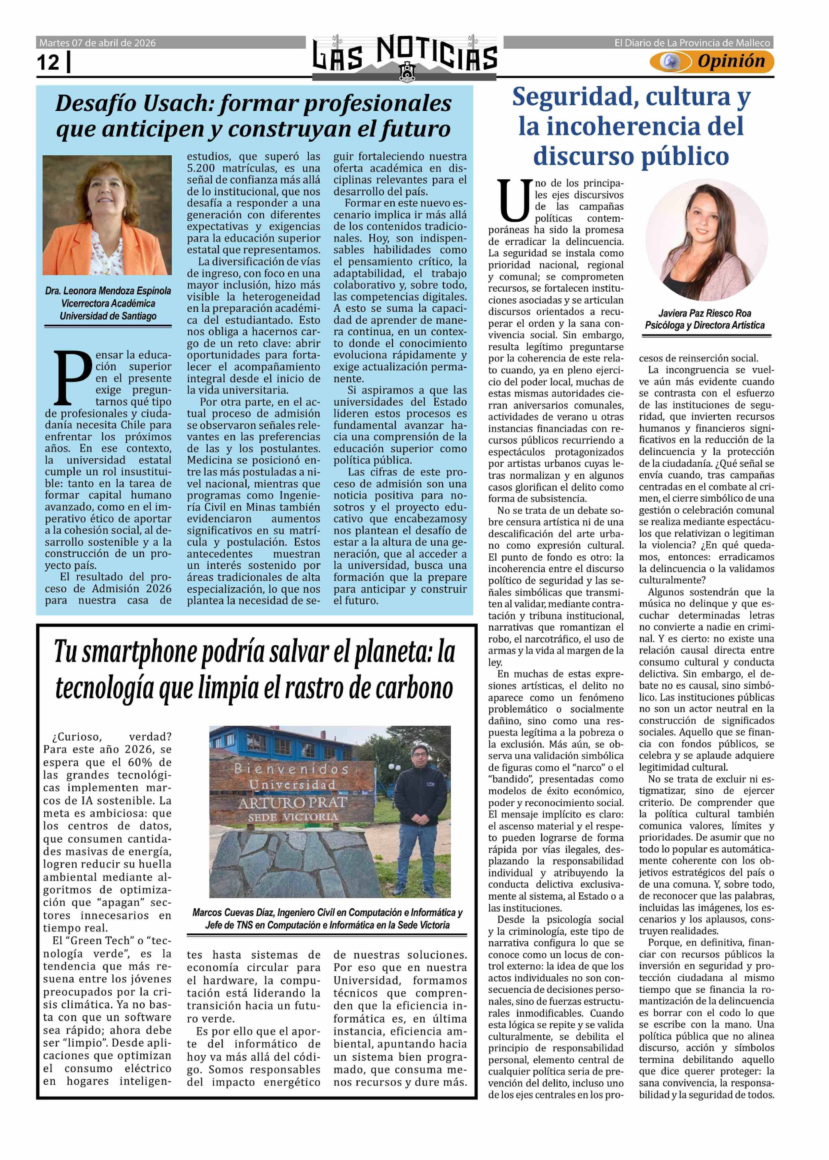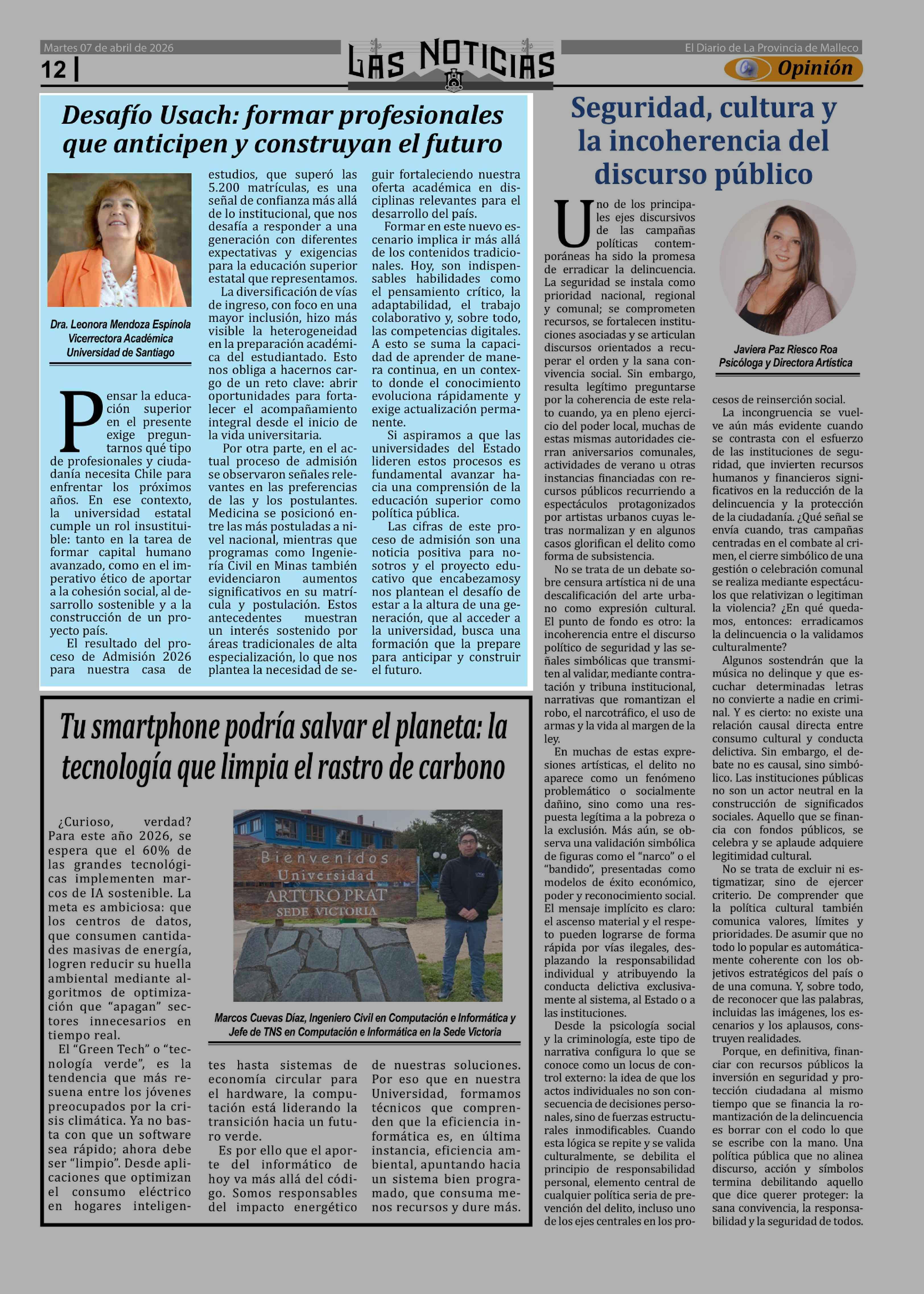 Fecha: 07-04-2026 Sector: Columnas de Opinión Región: Región de la Araucanía
