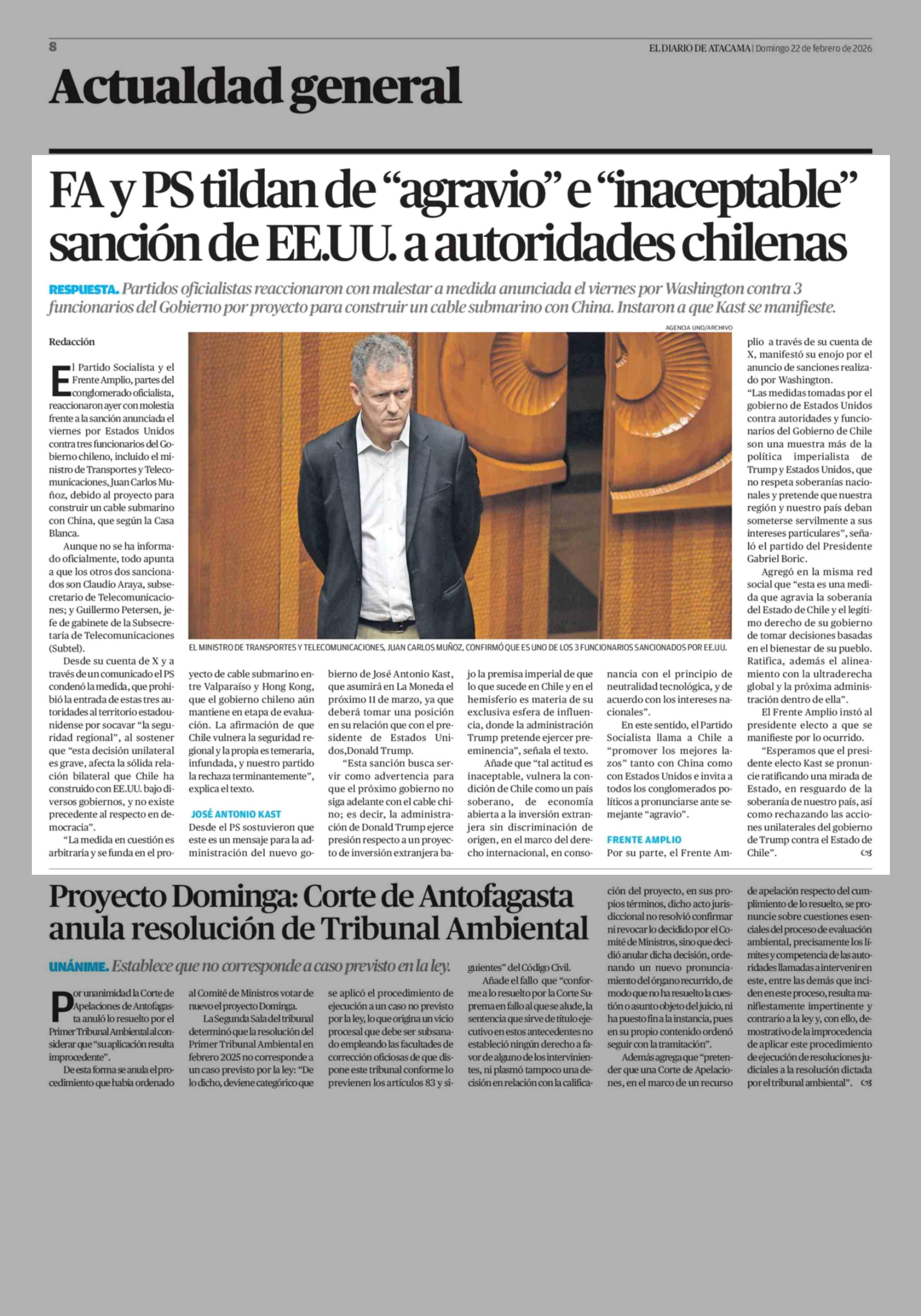 Fecha: 22-02-2026 Sector: Noticia general Región: Región de Atacama