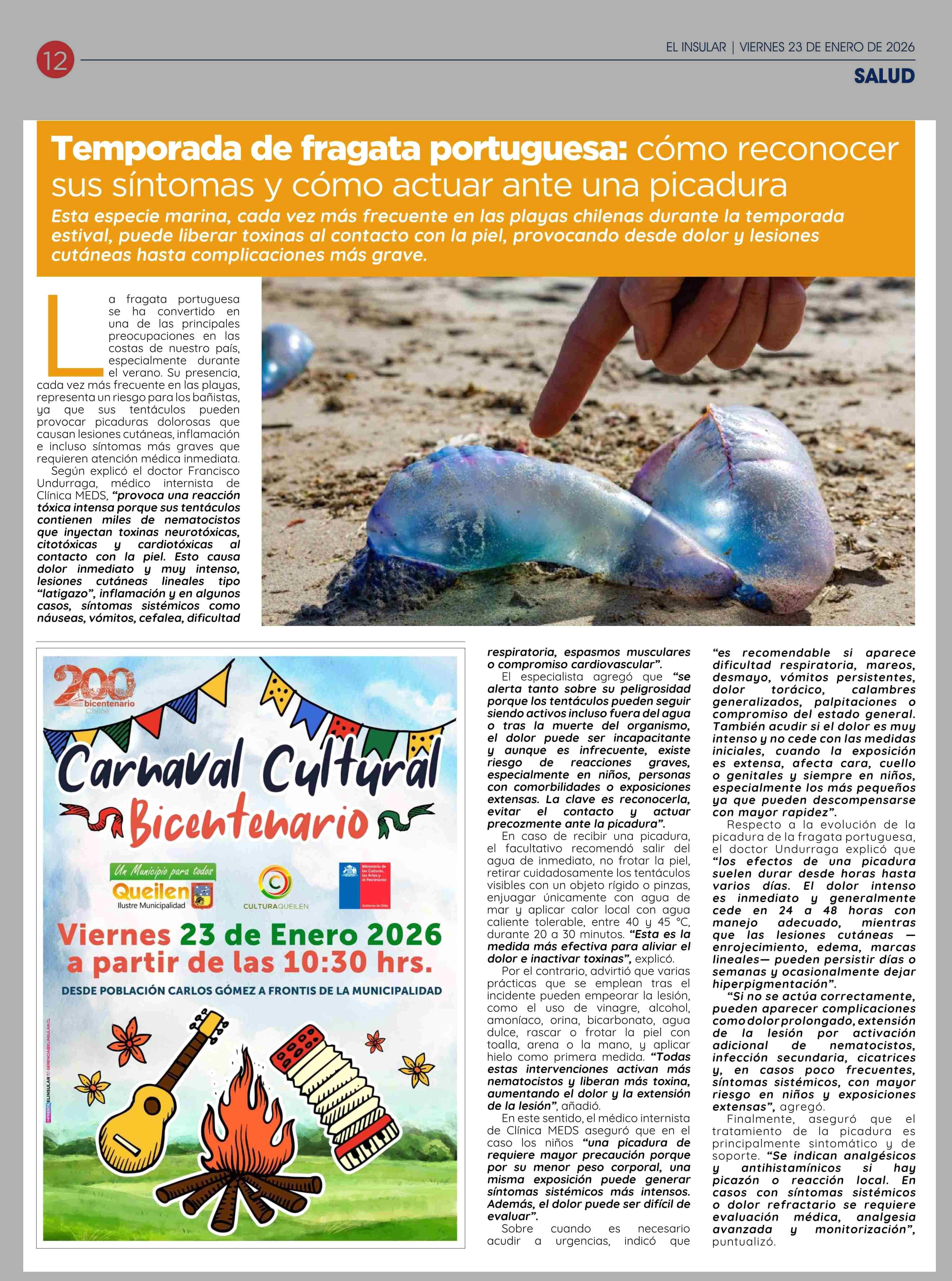Temporada de fragata portuguesa: cómo reconocer sus síntomas y cómo actuar ante una picadura 23-01-2026 El Insular |