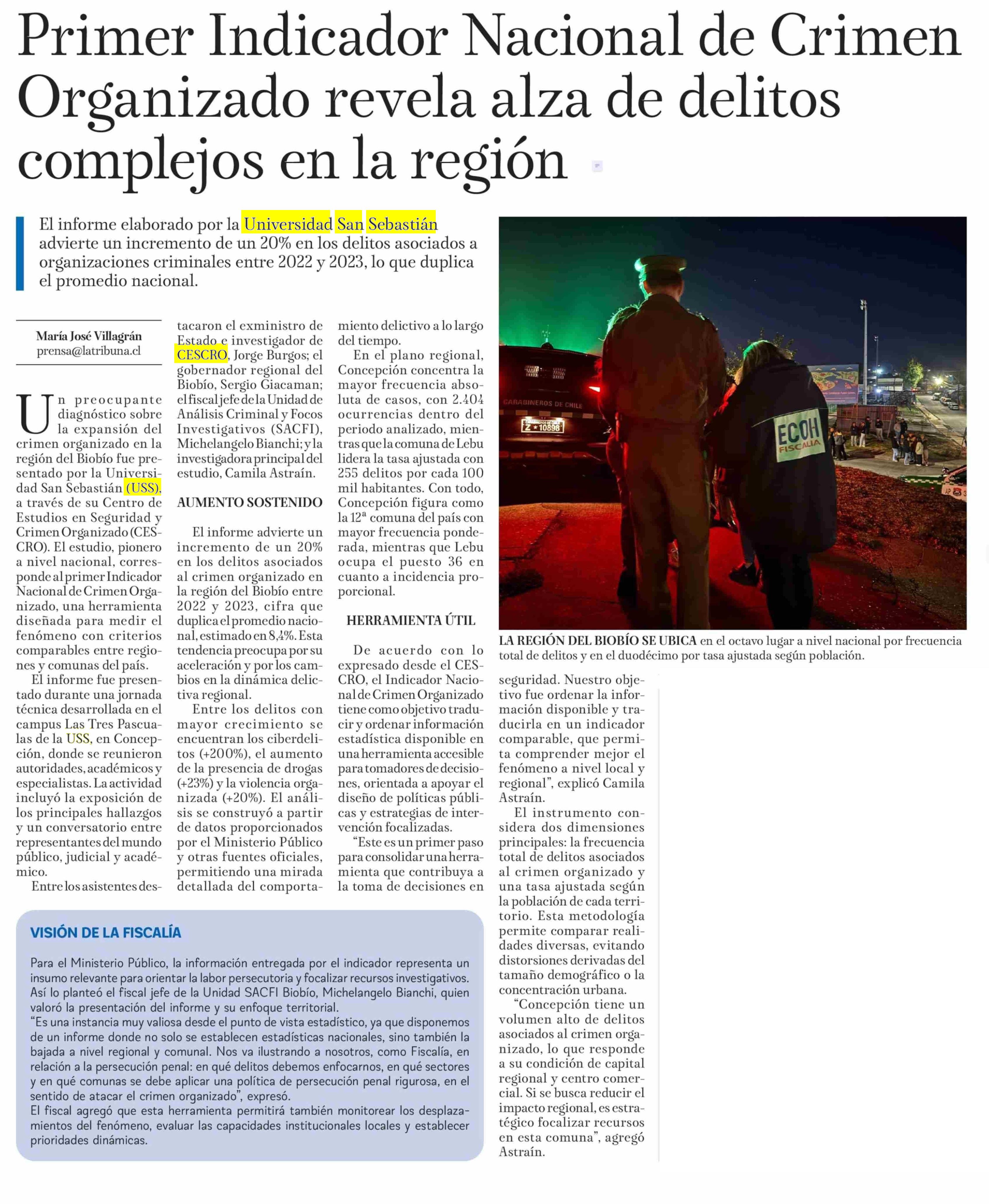 | Título: | Primer Indicador Nacional de Crimen Organizado revela alza de delitos complejos en la región |
