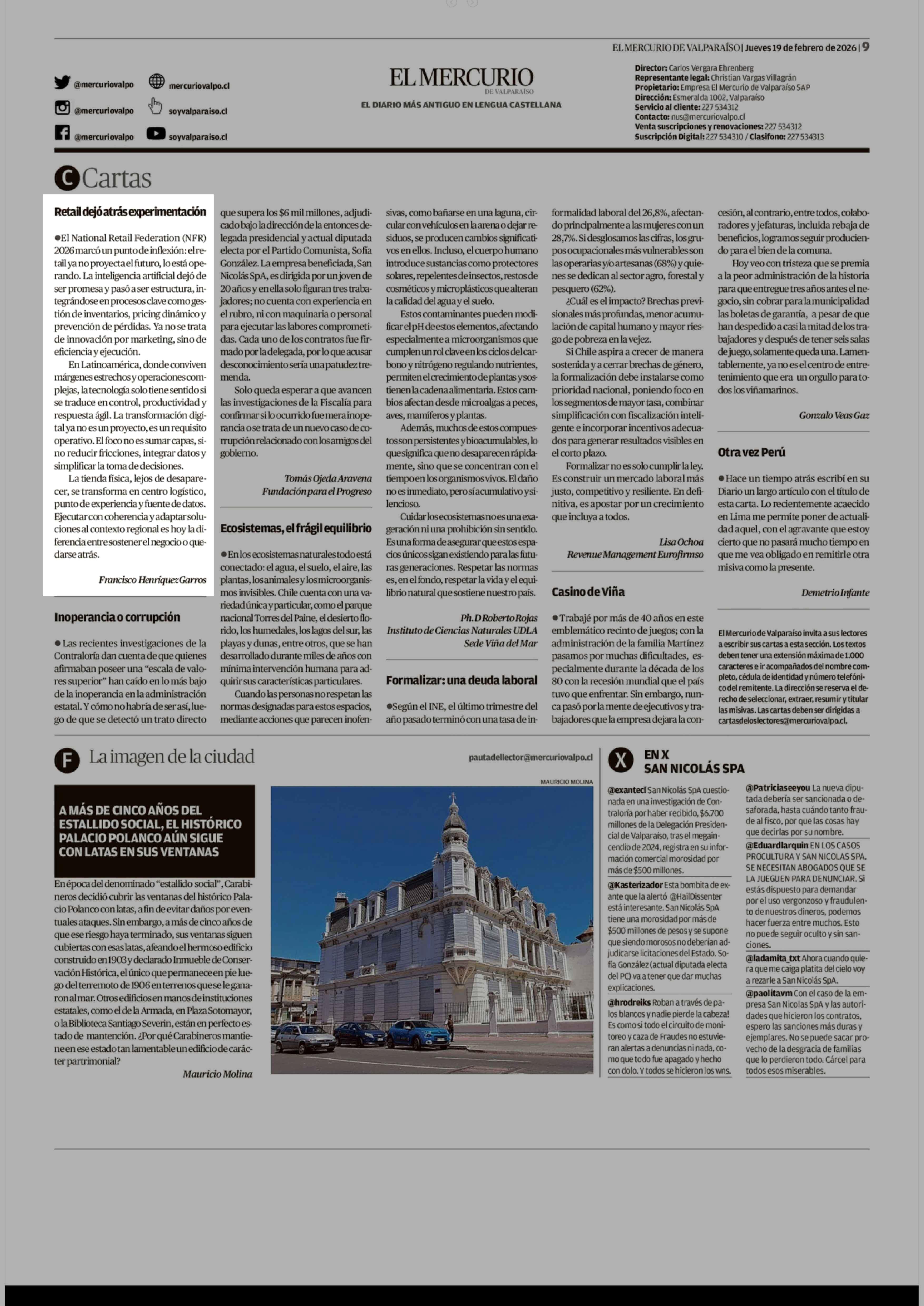 Cartas: Retail dejó atrás experimentación 19-02-2026 El Mercurio de Valparaíso |